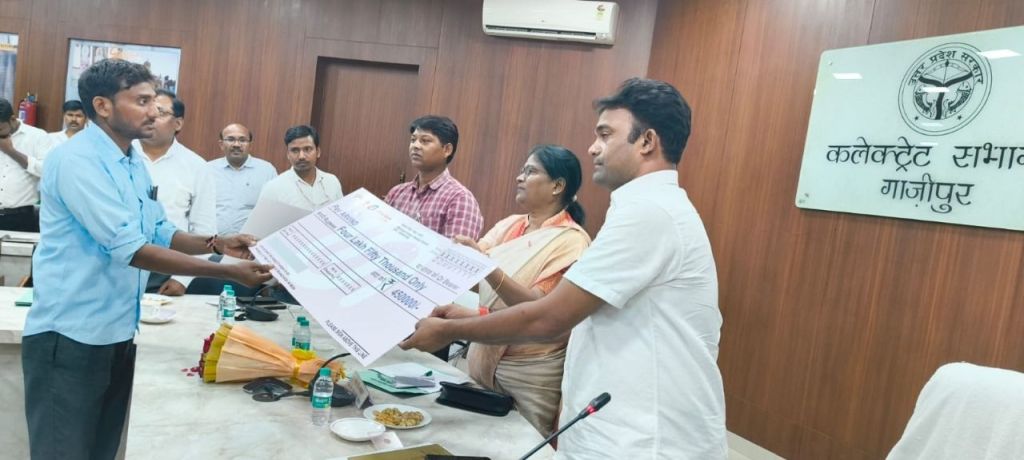 गाजीपुर।सेवा पखवाड़ा 2025 के अन्तर्गत विश्वकर्मा दिवस एवं प्रधानमंत्री नरेंद्र मोदी के जन्म दिवस पर विश्वकर्मा श्रम सम्मान योजना अन्तर्गत टूल किट एवं ऋण वितरण कार्यक्रम कलेक्ट्रेट सभागार में मुख्य अतिथि नगर पालिका अध्यक्ष सरिता अग्रवाल एवं जिला विकास अधिकारी सुभाष चन्द्र सरोज की उपस्थिति में किया गया। कार्यक्रम का शुभारंभ मुख्यमंत्री द्वारा लखनऊ से किया गया। जिसका लाइव प्रसारण सुना व देखा गया। तत्पश्चात् अध्यक्ष नगर पालिका एवं जिला विकास अधिकारी द्वारा उपस्थित लाभार्थीयों को टूल किट एवं डेमो चेक का वितरण किया गया। उपायुक्त उद्योग प्रवीण कुमार मौर्य द्वारा बताया गया कि प्रदेश सरकार द्वारा विश्वकर्मा श्रम सम्मान योजना वर्ष 2018 में पारम्परिक कारीगरों यथा-दर्जी, नाई, लोहार, बढ़ई, सोनार, मोची, राजमिस्त्री, कुम्हार, टोकरी बुनकर एवं हलवाई का कौशल उन्नयन करते हुए टूलकिट प्रदान कर रोजगार से जोड़ने के लिए चलाई गयी है। अब तक विभिन्न ट्रेडों में कुल 6475 कारीगरों को प्रशिक्षण के साथ-साथ टूलकिट प्रदान कर रोजगार मुहैया कराया गया है। उक्त योजना में वर्ष 2022 से वर्ष 2025 तक 31 लाभार्थियों को मुख्यमंत्री युवा उद्यमी विकास अभियान योजना में रू0 102.72 लाख रूपये, मुख्यमंत्री युवा स्वरोजगार योजनान्तर्गत 08 लाभार्थियों को 55.65 लाख रूपये, प्रधानमंत्री रोजगार सृजन कार्यक्रम अन्तर्गत 05 लाभार्थियों 88.00 लाख रूपये एवं मुद्रा योजनान्तर्गत 01 लाभार्थी को 2.00 लाख रूपये ऋण बैंकों द्वारा उपलब्ध कराया गया है। इस प्रकार विगत 03 वर्षों में 45 लाभार्थियों को कुल 248.37 लाख रूपये ऋण प्रदान किया गया है।