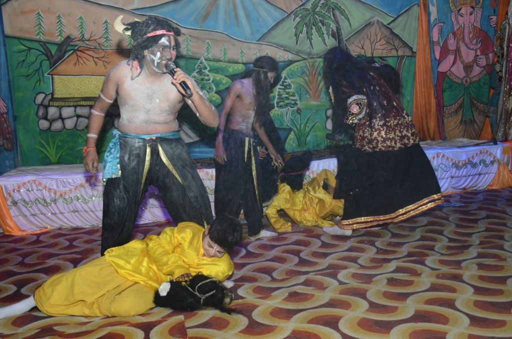 गाजीपुर। अति प्राचीन श्रीरामलीला कमेटी हरिशंकरी की ओर से लीला के दूसरे दिन 18 सितम्बर दिन गुरूवार के शाम 7:00 बजे से वन्दे वाणी विनायकौ आदर्श श्रीरामलीला मण्डल के कलाकारो द्वारा हरिशंकरी स्थित श्रीराम चबूतरा पर मुनि आगमन, ताड़का वध अहिल्या उद्धार तथा सीताराम मिलन लीला का मंचन किया गया। लीला के क्रम में दर्शाया गया कि महामुनि विश्वामित्र अपने आश्रम पर शिष्यों सहित धार्मिक अनुष्ठान कर रहे थे कि अचानक राक्षसो का समूह उनके अनुष्ठान (यज्ञ) को विध्वंस करना शुरू कर दिया।