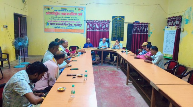 गाजीपुर।जिला सहकारी बैंक लि०, गाजीपुर के अध्यक्ष सरोजेश सिंह द्वारा जनपद के मीडिया बन्धुओं के साथ प्रेस वार्ता की गई जिसमें सहकारिता विभाग, उ०प्र०, की ओर से दिनांक 12.09.2025 से 12.10.2025 तक चलाये जा रहे सदस्यता महाअभियान 2025 के सम्बंध में विस्तृत चर्चा की गयी। समितियों पर प्रत्येक किसान को सहकारिता से जोड़ने तथा सहकारिता के समस्त लाभ किसानों तक पहुंचाने के उद्देश्य से सहकारिता विभाग द्वारा सदस्यता महाअभियान 2025 प्रारम्भ किया गया है। जिसका मुख्य उद्देश्य अपने सदस्यों को ‘‘सहकारी कृषक पंजिका‘‘ जारी करना है जो राष्ट्रीय सहकारिता नीति 2025 का हिस्सा है। जिसमें किसान एवं उसकी भूमि के रकबे का विवरण होगा। सहकारी कृषक पंजिका 2025 के आधार पर सदस्यों को उर्वरक वितरण में प्राथमिकता प्रदान की जाएगी। कृषक पंजिका के आधार पर समिति में खाद की आपूर्ति की जायेगी ताकि किसान को किसी भी प्रकार की कठिनाई का सामना न करना पड़े। इसलिए अध्यक्ष बैंक द्वारा अपने जनपद के किसानों से अनुरोध है कि आप किसान बन्धु 226.00 रू० मात्र जमा करके एम-पैक्स की सदस्यता ग्रहण करें ताकि खाद एवं योजानओं का लाभ प्राप्त कर सके। प्रेस कान्फ्रेस में विपिन कुमार सिंह सहायक आयुक्त एवं सहायक निबंधक, सहकारिता जनपद-गाजीपुर एवं सुनील कुमार वर्मा, सचिव/मुख्यकार्यपालक अधिकारी, जिला सहकारी बैंक लि०, गाजीपुर आदि उपस्थित रहे।