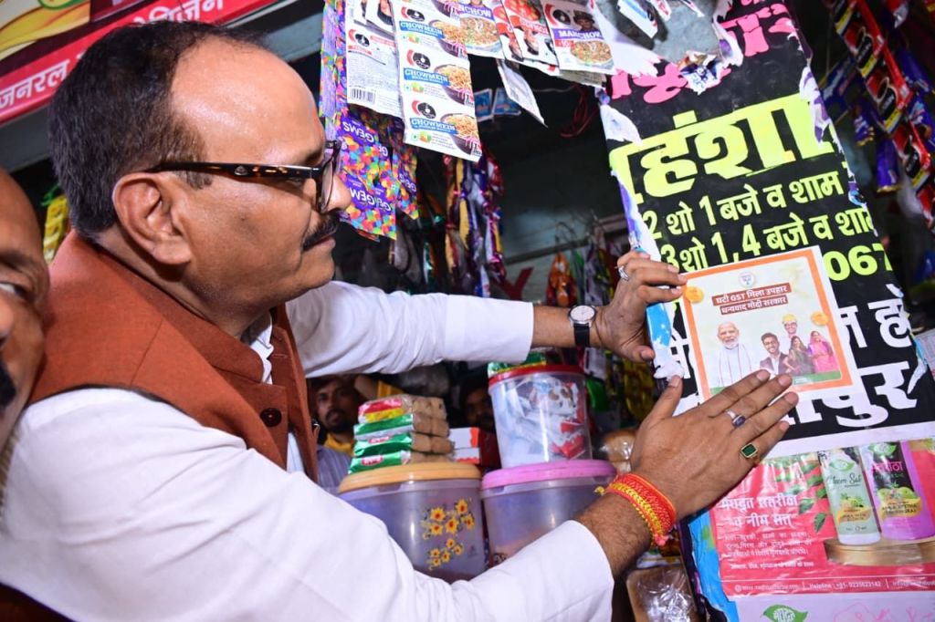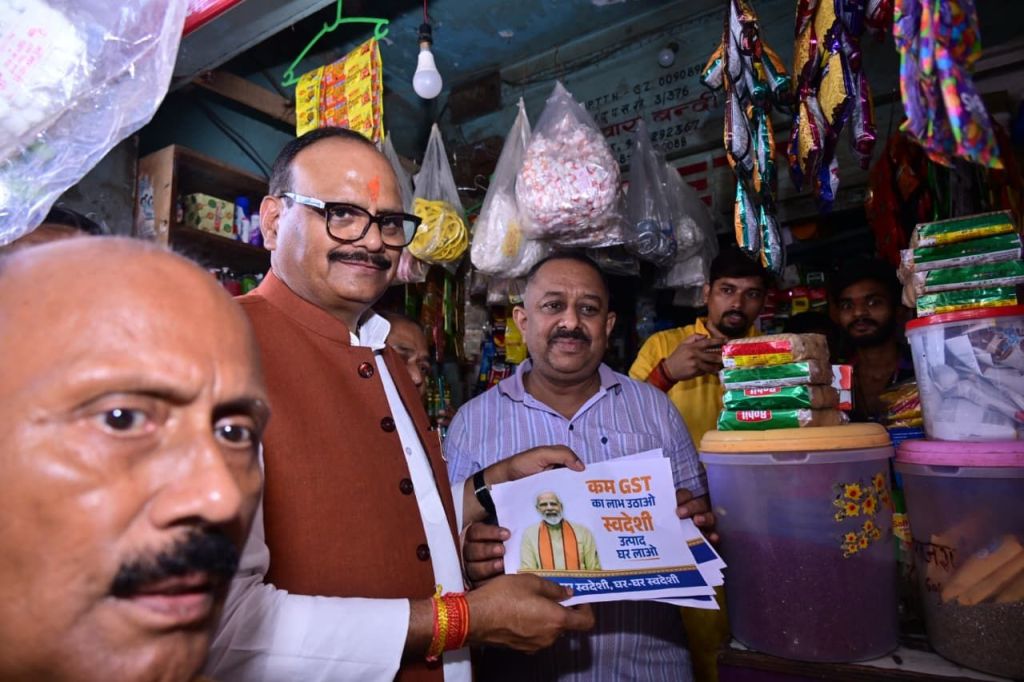 गाजीपुर।नेक्स्ट जेन जीएसटी रिफॉर्म (अगली पीढ़ी के लिए जीएसटी सुधार) सोमवार से लागू हो गए। इसे लेकर उप मुख्यमंत्री बृजेश पाठक ने प्रदेश सरकार द्वारा पूर्व में तय जीएसटी रिफॉर्म जागरूकता अभियान के पहले चरण मे खुद व्यापारियों और ग्राहकों के बीच जनसंर्पक किया। उप मुख्यमंत्री ने मंगलवार को जनपद गाजीपुर मे पूर्वाह्न पदयात्रा कर राजकीय बालिका इण्टर कालेज महुआबाग मे कारोबारी प्रतिष्ठानों में जाकर कारोबारियों और वहां मिले ग्राहकों से बात की। जीएसटी सुधारों पर उनकी प्रतिक्रिया जानी। उन्होंने कारोबारियों से आग्रह किया मोदी सरकार से उपहार स्वरूप घटी जीएसटी का लाभ ग्राहकों को अवश्य दें और स्वदेशी उत्पादों को बढ़ावा देने के लिए प्रतिष्ठानों पर ‘घटी जी एस टी मिला उपहार, धन्यावद मोदी सरकार,’ कम जीएसटी का लाभ उठाओ, स्वदेशी उत्पाद घर लाओ, का पोस्टर जरूर लगाएं।