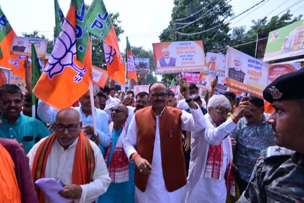 उप मुख्यमंत्री ने उन्हें जीएसटी रिफॉर्म का स्टीकर देकर कहा कि सभी लोगों को जीएसटी सुधार के लिए पीएम मोदी के प्रति आभार व्यक्त करना चाहिए। व्यापारियों और ग्राहकों से संपर्क और संवाद के क्रम में उन्होने जीएसटी दरों में कमी को लेकर ग्राहकों को आप लोग खुद भी जागरूक करिए। इससे ग्राहक को फायदा होगा ही, आपका भी बाजार समृद्ध होगा। उन्होंने कहा कि आप लोग प्रधानमंत्री नरेंद्र मोदी को धन्यवाद दें कि उन्होंने लंबे समय से चली आ रही व्यापारियों की मांग के अनुसार जीएसटी रिफॉर्म लागू किया है। उप मुख्यमंत्री की पदयात्रा में ‘घटी जीएसटी बढ़ा व्यापार, धन्यवाद मोदी सरकार’ के खूब नारे लगे।