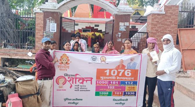 गाजीपुर।जिलाधिकारी अविनाश कुमार के निर्देश एवं जिला प्रोबेशन अधिकारी के मार्गदर्शन में विशेष जागरूकता अभियान के तहत नवापुरा दुर्गा मंदिर एवं ददरी घाट एवं मिश्रबाजार में महिला कल्याण विभाग द्वारा संचालित योजनाओं का प्रचार प्रसार किया गया। इसमें लोगों को जागरूक किया गया कि प्रदेश सरकार महिलाओं एवं बालिकाओं की सुरक्षा, सम्मान एवं स्वावलंबन हेतु शारदीय नवरात्रि के पर्व पर दिनांक 22.09.2025 से 90 दिवसीय “मिशन शक्ति” के विशेष अभियान के पांचवे चरण शुरू किए जाने के संबंध में महिला एवं बाल विकास विभाग द्वारा जारी कार्ययोजना के अनुसार निर्धारित तिथियों पर सुव्यवस्थित/सुचारू रूप से कार्यक्रम सम्पादित करने के निर्देश दिए गए हैं।