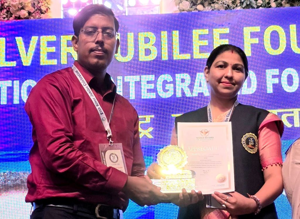 गाजीपुर। नेशनल इंटीग्रेटेड फोरम ऑफ आर्टिस्ट एंड एक्टिविस्टस (निफा) द्वारा रजत जयंती के उपलक्ष्य में 21 से 23 सितम्बर 2025 तक 3 दिवसीय सम्मान समारोह का आयोजन 2 राज्यों में हुआ! जिसमें 3 दिवसीय रजत जयंती सम्मान समारोह में 21 सितम्बर को एक दिवसीय दिल्ली के भारत मंडपम तथा 2 दिवसीय हरियाणा के करनाल जिले में गोल्डन मूवमेंट आयोजित हुआ। सम्मान समारोह में मुख्य अतिथि हरविंदर कल्याण अध्यक्ष विधानसभा हरियाणा, वर्ल्ड रिकॉर्ड एक्सलेंस, इंग्लैंड के वाइस प्रेसिडेंट संजय पंजवानी व जापान, मोरिशस और इंग्लैंड से आए अतिथियों द्वारा पूरे देश के समाजसेवियों के साथ गाजीपुर जनपद के जीवन रक्षक फाउंडेशन के संस्थापक शीर्ष दीप शर्मा और सचिव डाॅ० उरूज फात्मा को दिल्ली और हरियाणा में “वर्ल्ड रिकॉर्ड ऑफ़ एक्सीलेंस, इंग्लैंड” और “यंग कम्युनिटी चैंपियन अवार्ड” से सम्मानित किया गया।