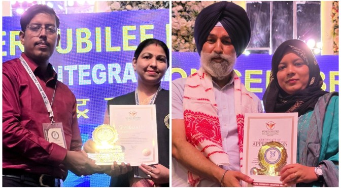 वर्ल्ड रिकॉर्ड ऑफ एक्सलेंस, इंग्लैंड अवार्ड से सम्मानित हुई डाॅ० उरूज फात्मा और शीर्ष दीप