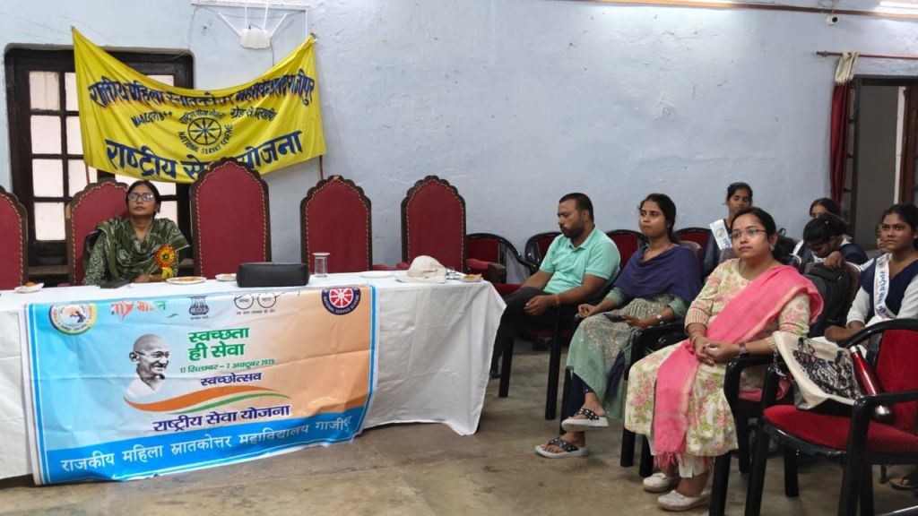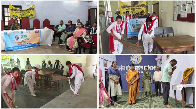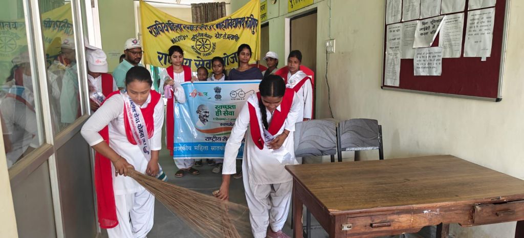 गाजीपुर। बुधवार को राष्ट्रीय सेवा योजना स्थापना दिवस के अवसर पर राष्ट्रीय सेवा योजना, राजकीय महिला स्नातकोत्तर महाविद्यालय महुआबाग द्वारा स्वच्छता ही सेवा अभियान के अंतर्गत बृहद स्वच्छता कार्यक्रम चलाया गया । छात्राओं ने पुस्तकालय और वाचनालय में झाड़ू लगाकर साफ सफाई की एवं स्वच्छता संबंधी नारे लगाकर जागरूकता फैलाई। तत्पश्चात सावित्रीबाई फूले सभागार में राष्ट्रीय सेवा योजना का स्थापना दिवस आयोजित किया गया।
