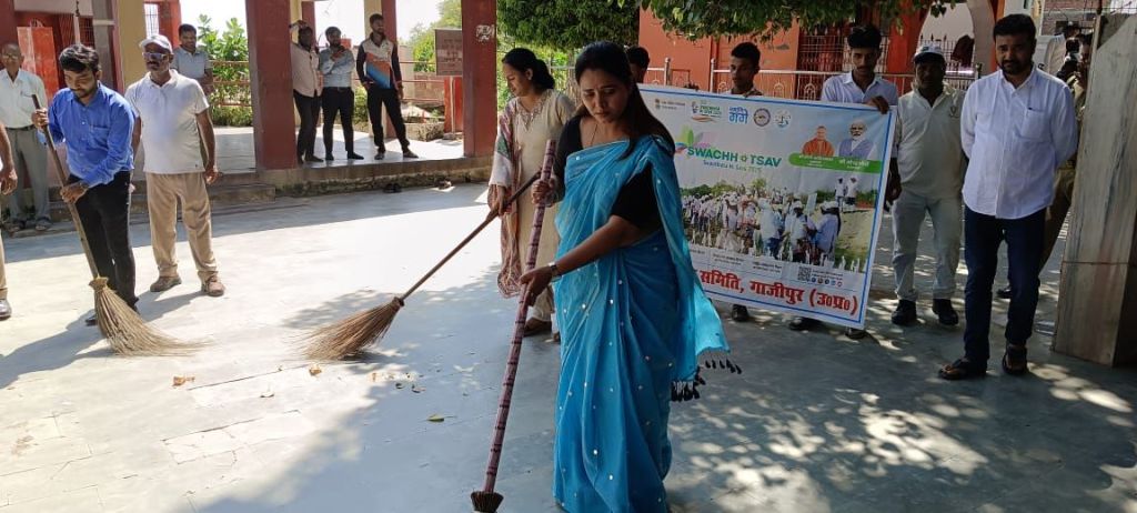 गाजीपुर।जिला गंगा समिति द्वारा स्वच्छता ही सेवा अभियान 2025 के अंतर्गत जनपद के बड़ा महादेवा गंगा घाट पर वृहद स्तर पर स्वच्छता अभियान चलाया गया । राधिका देवी उच्चतर माध्यमिक विद्यालय के बच्चों ने बढ़-चढ़कर प्रतिभाग किया । 17 सितंबर से 2 अक्टूबर तक चलने वाला स्वच्छता ही सेवा 2025 अभियान जिसे इस बार स्वच्छोत्सव नाम दिया गया । स्वच्छता अभियान में मुख्य रूप से जिला पंचायत अध्यक्ष सपना सिंह शामिल होकर बड़ा महादेवा के प्रांगड़ में फैले फूल-माला, प्लास्टिक आदि को साफ किया। स्वच्छता अभियान में शामिल सभी युवाओं को मां गंगा की स्वच्छता शपथ दिलाई ।सपना सिंह ने कहा कि स्वच्छता ही सेवा अभियान स्वच्छता को एक साझा जिम्मेदारी के रूप में मनाने के लिए सभी वर्गों के लोगों को एक साथ ला रहा है यह सिर्फ अभियान नहीं है बल्कि स्वच्छता उत्सव है जो स्वच्छता और उत्सव के विचारों को खूबसूरती से जोड़ती है और स्वच्छता अभियान को सामुदायिक उत्सव में बदल देती है, स्वच्छता को हमें अपने दैनिक जीवन का हिस्सा बनना होगा।