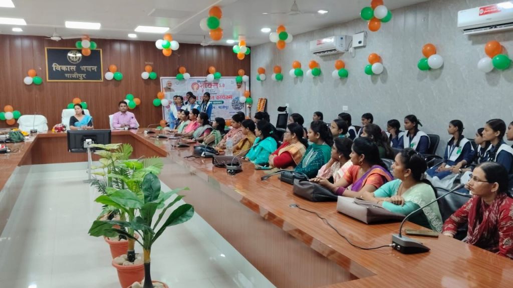 गाजीपुर।मिशन शक्ति 5.0 के अंतर्गत विकास भवन सभागार में कार्यक्रम का आयोजन किया गया। जिसमें मुख्य अतिथि के रूप में जिला पंचायत अध्यक्ष सपना सिंह, जिला विकास अधिकारी सुभाष चन्द्र सरोज जनपद नोडल रागिनी श्रीवास्तव प्रधानाचार्य राजकीय बालिका इंटर कॉलेज गाजीपुर द्वारा प्रतिभा किया गया। कार्यक्रम दीप प्रज्जवलन कर शुभारंभ अध्यक्षा द्वारा किया गया। जिसमें संवाद के माध्यम से सभी उपस्थिति शिक्षिकाओं के साथ संवाद किया गया। सभी शिक्षिकाओं ने मिशन शक्ति की महत्व को उसके परिणाम और इसकी क्या उपयोगिता है उसे पर विस्तार से प्रकाश डाला। जनपद के माध्यमिक विद्यालयों से उपस्थित शिक्षिकाएं और प्रधानाचार्य प्रधानाध्यापिकाएं ने अपना बहुमूल्य समय देकर के कार्यक्रम को सफल बनाया। कार्यक्रम के अंत में प्रधानाचार्य राजकीय सिटी इंटर कॉलेज दिनेश सर द्वारा धन्यवाद ज्ञापन किया ।सभी प्रशस्ति पत्र का वितरण किया गया।