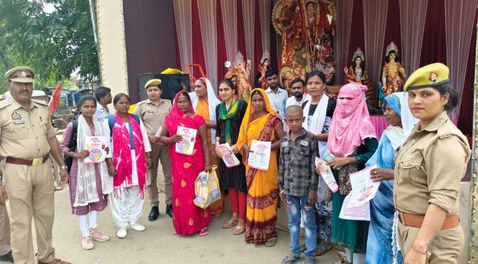 गाजीपुर।मिशन शक्ति-05” उ0प्र0 शासन के आदेशानुसार महिला सशक्तिकरण हेतु चलाए जा रहे “मिशन शक्ति” अभियान फेज-05 के अंतर्गत बुधवार को विभिन्न थाना क्षेत्र में स्थित दुर्गा माता के मंदिरों में आने वाली महिलाओं के लिए सुरक्षा और जागरूकता अभियान चलाया गया। सभी महिलाओं को पम्पलेट वितरित किया गया।स्थित पंडालों में जाकर वहाँ पर उपस्थित महिलाओं से संवाद स्थापित कर सभी को मिशन शक्ति अभियान के बारे में जागरूक किया गया। मिशन शक्ति अभियान को सार्थक बनाने के क्रम में जनपद के विभिन्न थाना क्षेत्रों में स्थित मुख्य- मुख्य बाजारों, संवेदनशील स्थानों एवं भीड़भाड़ वाली जगहों पर जाकर पुलिस बल द्वारा पैदल गश्त कर मिशन शक्ति का अभियान चलाकर सभी को जागरूक किया गया। समस्त थाना क्षेत्रों मे स्थापित मिशन शक्ति केन्द्र में आई हुई विभिन्न वर्गों की महिला जन प्रतिनिधिओं से संवाद/मीटिंग कर सभी महिलाओं, बालिकाओं को जागरूक करने के लिए प्रेरित किया गया। समस्त थाना क्षेत्रों मे पुलिस प्रशासन की एंटी रोमियो टीम द्वारा संवेदनशील क्षेत्रों में भ्रमण/चेकिंग कर शोहदों के विरुद्ध कार्यवाही की गई । उसके समस्त थाना क्षेत्रों मे वाहन चेकिंग अभियान चलाया गया , जिसमें हूटर, काली फिल्म, लाल नीली बत्ती, नंबर प्लेट पर शासकीय या जाति या धर्म को इंगित करने वाले शब्द/प्रतीक चिन्ह अंकित करने वालों, स्टंट करने वालों के विरुद्ध कार्यवाही की गई । मिशन शक्ति फेज 5.0 अभियान के तहत जनपद के समस्त थाना क्षेत्रों के स्थानीय रेलवे स्टेशन पर जीआरपी और आरपीएफ बल की मदद से समस्त जनमानस में मिशन शक्ति जागरूकता अभियान चलाया गया।