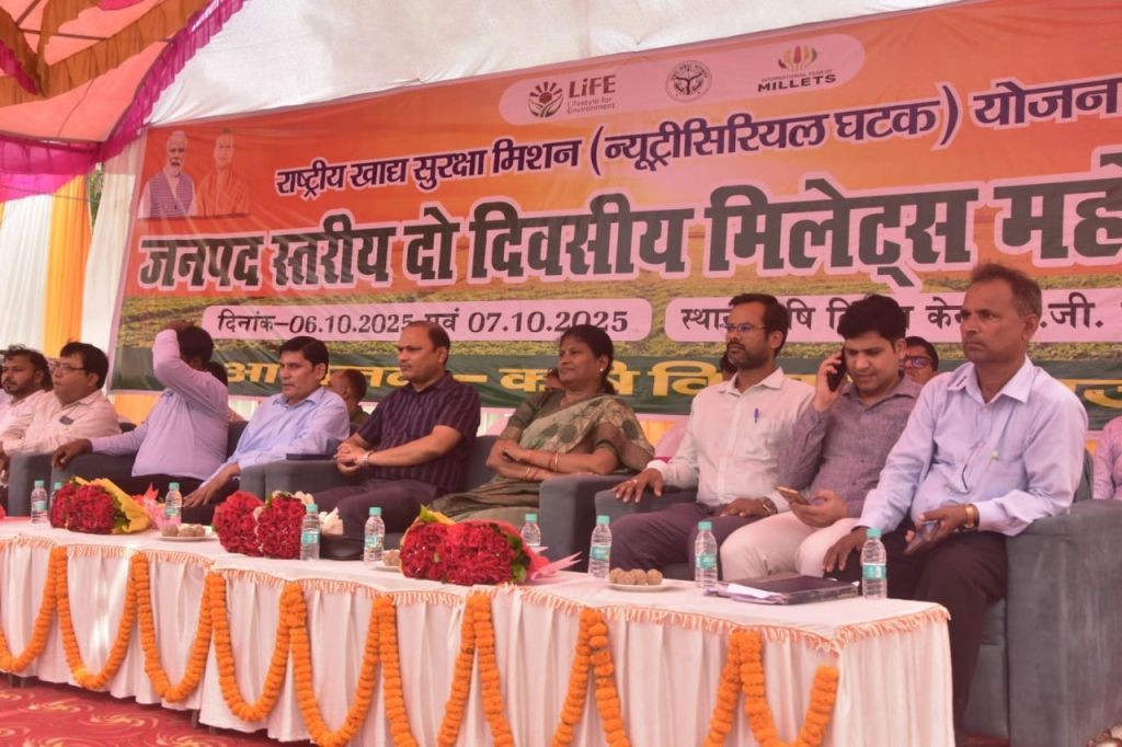 गाजीपुर। कृषि विभाग द्वारा जनपद स्तरीय दो दिवसीय मिलेट्स महोत्सव एवं मेला का आयोजन स्थान कृषि विज्ञान केन्द्र पी०जी० कालेज के प्रांगण में हुआ। मुख्य अतिथि नगर पालिका अध्यक्ष सरिता अग्रवाल एवं अपर जिलाधिकारी वि0/रा0 दिनेश कुमार द्वारा दीप प्रज्जवलित कर शुभारंभ किया ।