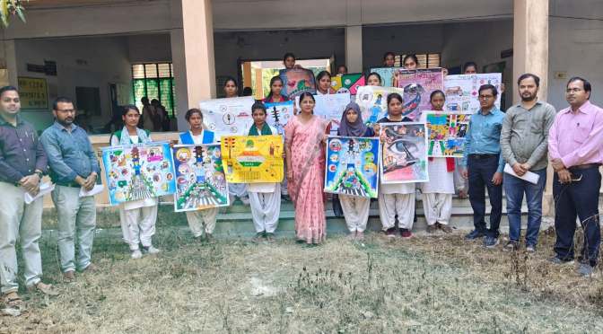 गाजीपुर। राजकीय महिला स्नातकोत्तर महाविद्यालय महुआबाग में गुरुवार को “सड़क सुरक्षा” विषय पर पोस्टर प्रतियोगिता का सफल आयोजन किया गया। कार्यक्रम की अध्यक्षता महाविद्यालय की प्राचार्य, प्रोफेसर अनीता कुमारी द्वारा किया गया। प्रतियोगिता में छात्राओं ने अपने पोस्टरो के माध्यम से सड़क सुरक्षा के महत्व , यातायात नियमों के पालन और दुर्घटना से बचाव के संदेश को प्रस्तुत किया।