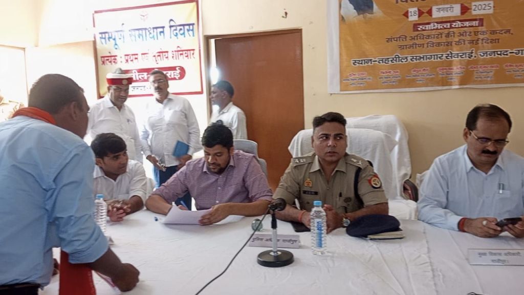 जिलाधिकारी ने सम्पूर्ण समाधान दिवस के अवसर पर आम जनमानस की शिकायतों को गंभीरतापूर्वक सुनते हुए कुछ शिकायतों का निस्तारण मौके पर ही कराया तथा शेष शिकायतों को संबंधित अधिकारियों को अग्रसारित करते हुए समयबद्ध एवं गुणवत्तापूर्ण निस्तारण हेतु निर्देशित किया गया। इस अवसर पर पुलिस और राजस्व विभाग के अधिकारियों/कर्मचारियों को निर्देशित किया गया कि जमीनी विवाद और आपसी विवाद एक ही विषय से संबंधित होते है इस लिए राजस्व विभाग एवं पुलिस विभाग के अधिकारी आपसी समन्वय स्थापित करते हुए विवादों का निस्तारण सुनिश्चित करें। तहसील के समस्त लेखपालों को निर्देशित किया गया कि शिकायतकर्ता की छोटी-छोटी समस्याएँ जिनका तत्काल निस्तारण किया जा सकता है। उसके लिए किसी व्यक्ति को परेशान न किया जाए। इस अवसर पर मुख्य विकास अधिकारी संतोष कुमार वैश्य, जिला विकास अधिकारी सुभाष चन्द्र सरोज, उपजिलाधिकारी सेवराई संजय यादव, तहसीलदार सेवराई, क्षेत्राधिकारी जमानियां एवं समस्त जनपदस्तरीय अधिकारी उपस्थित रहे।