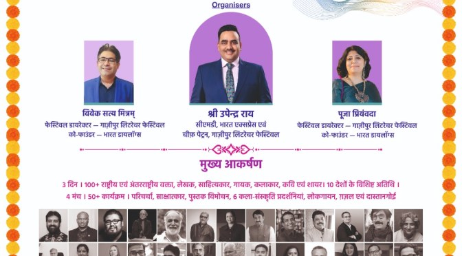 महोत्सव का मुख्य आयोजन 7 नवम्बर को वाराणसी के होटेल दी क्लार्क्स में जबकि 8 और 9 नवंबर को गाजीपुर के होटल नंद रेजिडेंसी और अति प्राचीन रामलीला मैदान लंका में होगा। “जड़ो की ओर” टॉपिक पर केंद्रीत इस महोत्सव में राष्ट्रीय और अंतर्राष्ट्रीय वक्ता, लेखक, साहित्यकार, गायक, कलाकार, कवि और शायर भाग लेंगे। भारत एक्सप्रेस न्यूज नेटवर्क के सीएमडी उपेंद्र राय और भारत डायलॉग्स की सह-संस्थापक पूजा प्रियंवदा भी इस कार्यक्रम में उपस्थित रहेंगी।
