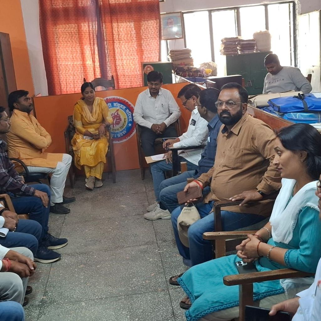 गाजीपुर।सोमवार को जिला बेसिक शिक्षा अधिकारी डा.उपासना रानी वर्मा की अध्यक्षता में कर्मचारी संगठन के पदाधिकारी व आम सदस्यों के साथ बैठक विकास भवन में सम्पन्न हुआ।बैठक में राज्य कर्मचारी संयुक्त परिषद के जिलाध्यक्ष दुर्गेश कुमार श्रीवास्तव द्वारा कार्यालय में कार्यरत कर्मियों के मूलभूत सुबिधा(सामग्री) के लिए कुर्सी,कम्प्यूटर प्रिंटर उपलब्ध कराया जाना,व सभी कर्मियों के कार्य विभाजन लेकर विस्तृत प्रकाश डाला।जिस पर जिला बेसिक शिक्षा अधिकारी द्वारा बैठक में उपस्थित सभी कर्मियों के लिए कुर्सी,कम्प्यूटर सहित अन्य सामग्रियों के लिए वित्त एवं लेखाधिकारी बेसिक शिक्षा अभिषेक कुमार यादव से उक्त सामग्री खरीदारी के लिए सहमति बनी ।जिसके क्रम में जिला बेसिक शिक्षा अधिकारी द्वारा संबंधित कर्मी को डिमांड पत्रावली तैयार करने हेतु निर्देशित किया गया। बैठक की कार्यवृत्त जारी करने हेतु निर्देशित किया।