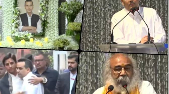 प्रार्थना सभा में लोकसभा अध्यक्ष ओम बिड़ला भी पहुँचे. इस दौरान उन्होंने दिवंगत राजेश राय के चित्र पर पुष्पांजलि अर्पित कर उन्हें भावभीनी श्रंद्धाजलि दी.CMD उपेंद्र राय के आवास पर आयोजित शोक सभा में भी आचार्य पवन त्रिपाठी और अन्य ने परिवार के साथ समय बिताया. चिन्मय मिशन में हुई मुख्य सभा के दौरान उपस्थित लोग स्वर्गीय राजेश राय के तस्वीर पर माल्यार्पण करते नजर आए, जहां फूलों से सजी फ्रेम और दीप प्रज्वलन ने माहौल को और भी श्रद्धामय बना दिया.निखिल बेरी की मधुर प्रस्तुति ने मंत्रमुग्ध कियाप्रार्थना सभा का एक खास आकर्षण निखिल अवार्ड विजेता गायक निखिल बेरी की भावपूर्ण प्रस्तुति रही. उन्होंने ‘जीवन की प्रभु सांझ ढली है, अब तो शरण में ले लो..’ और ‘हमें रास्तों की जरूरत नहीं है, हमें तेरे पैरों के निशां मिल गए हैं…’ जैसे भजनों से श्रोताओं को मंत्रमुग्ध कर दिया. इन मधुर धुनों को सुनकर उपस्थित सभी लोग भावुक हो उठे, और कईयों की आंखें नम हो गईं. यह प्रस्तुति सभा के अंत की एक मार्मिक विदाई बनी. CMD उपेंद्र राय के सोशल मीडिया हैंडिल (ट्विटर) पर इस प्रार्थना सभा का लाइव प्रसारण साझा किया, जिससे जुड़कर बहुत-से लोगों ने स्वर्गीय राजेश राय को श्रद्धांजलि दी. यह सभा न केवल परिवार का दुख कम करने वाली रही, बल्कि स्वर्गीय राजेश राय के जीवन दर्शन को नई पीढ़ी तक पहुंचाने वाली भी साबित हुई.भारत एक्सप्रेस परिवार इस दुख की घड़ी में सभी शुभचिंतकों के प्रति आभार व्यक्त करता है. स्वर्गीय राजेश राय की स्मृति अमर रहे.