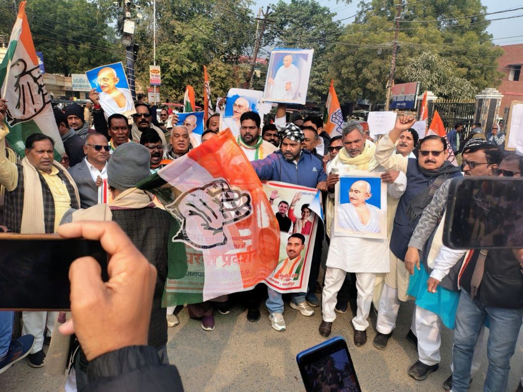 मनरेगा खत्म करने की साजिश के खिलाफ कांग्रेस का उग्र प्रदर्शन