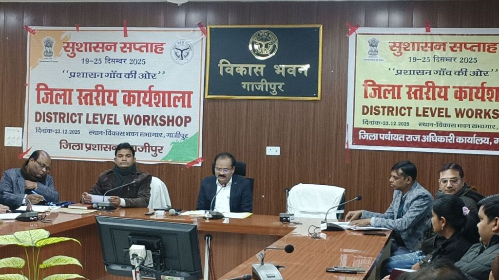 कार्यशाला में जिला विकास अधिकारी सुभाष चन्द्र सरोज ने कहा कि हम सभी लोग शासन की योजनाओं को जनसामान्य तक पारदर्शी ढंग से पहुंचाने के साथ ही उनकी शिकायतों का प्राथमिकता के आधार पर निस्तारण करें तथा अपने दायित्वों व कर्तव्यों का बेहतर ढंग से क्रियान्वयन करें यही सुशासन है। सुशासन सप्ताह दिनांक 19 दिसम्बर से 25 दिसम्बर 2025 तक मनाया जा रहा है जिसमें विभिन्न विभागों द्वारा सरकार की लाभ परक योजनाओं का लाभ पात्र व्यक्तियों को चौपाल/कैम्प लगाकर लाभान्वित किया जा रहा है। कार्यशाला कार्यक्रम में जिला सूचना विज्ञान अधिकारी, समस्त जनपद स्तरीय अधिकारी/कर्मचारीगण उपस्थित रहे।