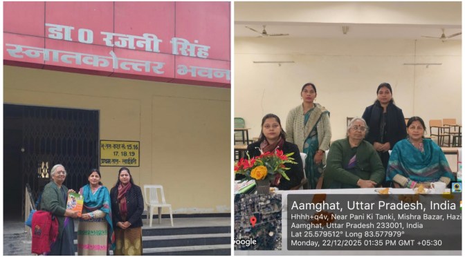 गाजीपुर। महिला महाविद्यालय में विभागीय शोध समिति की बैठक शोध निर्देशक डॉ मनीष सोनकर के अधीन शोध कार्य हेतु संपन्न हुई।गृह विज्ञान विभाग में शोध प्रवेश हेतु विभागीय शोध समिति (डीआरसी) की बैठक में एक अभ्यर्थी को शोध कार्य हेतु चुना गया। वाह्य विषय विशेषज्ञ के रूप में काशी हिंदू विश्वविद्यालय से आईं प्रोफेसर अर्चना चक्रवर्ती ने विश्वविद्यालय के सभी मानकों जैसे एकेडमिक इंडेक्स, प्रेजेंटेशन एवं साक्षात्कार का पालन करते हुए अभ्यर्थियों को शोध कार्य करने हेतु संस्तुत किया।