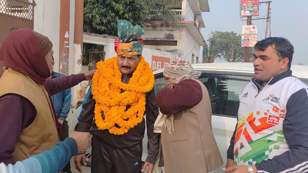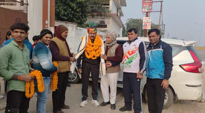 गाजीपुर(बहरियाबाद)। रामकरन इंटर कालेज ईशोपुर रामपुर गाजीपुर में उत्तर प्रदेश कुश्ती संघ के महासचिव सुरेश उपाध्याय का पहली बार आगमन हुआ। विद्यालय में महासचिव का स्वागत पूर्व विधान परिषद सदस्य डा. विजय यादव तथा प्रधानाचार्य आत्मा यादव व खेल अध्यापक/ कुश्ती कोच राम आशीष यादव सहित दर्जनों की संख्या में उपस्थित छात्र/पहलवानों द्वारा माला, पगड़ी तथा अंग वस्त्र भेट करके किया गया। इस दौरान उन्होंने कहा कि कुश्ती के प्रति विद्यालय का समर्पण तथा सफलता को देख मैं अपने-आप को आपके बीच लाने से रोक नहीं पाया। उन्होंने तैयार हुए कुश्ती हाल, मिट्टी का अखाड़ा, तथा जिम्नेजियम कक्ष का निरीक्षण किया। कुश्ती खेल की संभावनाओं तथा आधुनिक संसाधनों की उपलब्धता सहित प्रदेश स्तर की प्रतियोगिता के आयोजन पर विस्तार से चर्चा करते हुए विद्यालय को जल्द ही कुश्ती मैट देने की बात कही। इनके साथ आये वाराणसी कुश्ती संघ के संयुक्त सचिव गोरख नाथ यादव, कुशल वक्ता रामसेवक यादव, कुश्ती कोच विशाल यादव ने खेल के प्रति विद्यालय की सकारात्मक सोच की सराहाना की। सपा जिला उपाध्यक्ष आशीष यादव “राहुल” (निदेशक, स्पोर्ट्स एकेडेमी) ने कुश्ती संघ के महासचिव का आभार व्यक्त किया।