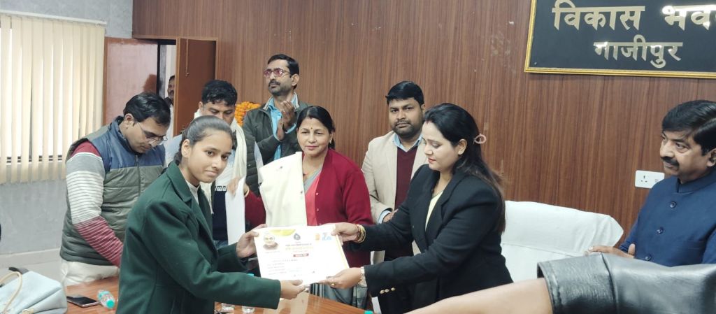 निबंध लेखन प्रतियोगिता में प्राची कश्यप, दिव्या कुशवाहा एवं स्नेहा पांडे, प्रथम, द्वितीय एवं तृतीय स्थान पर रही तथा इन्हें पुरस्कार स्वरूप रुपए पांच हजार, तीन हजार एवं दो हजार का चेक मुख्य अतिथि सपना सिंह एवं उपस्थित अधिकारियों द्वारा प्रदान किया गया।