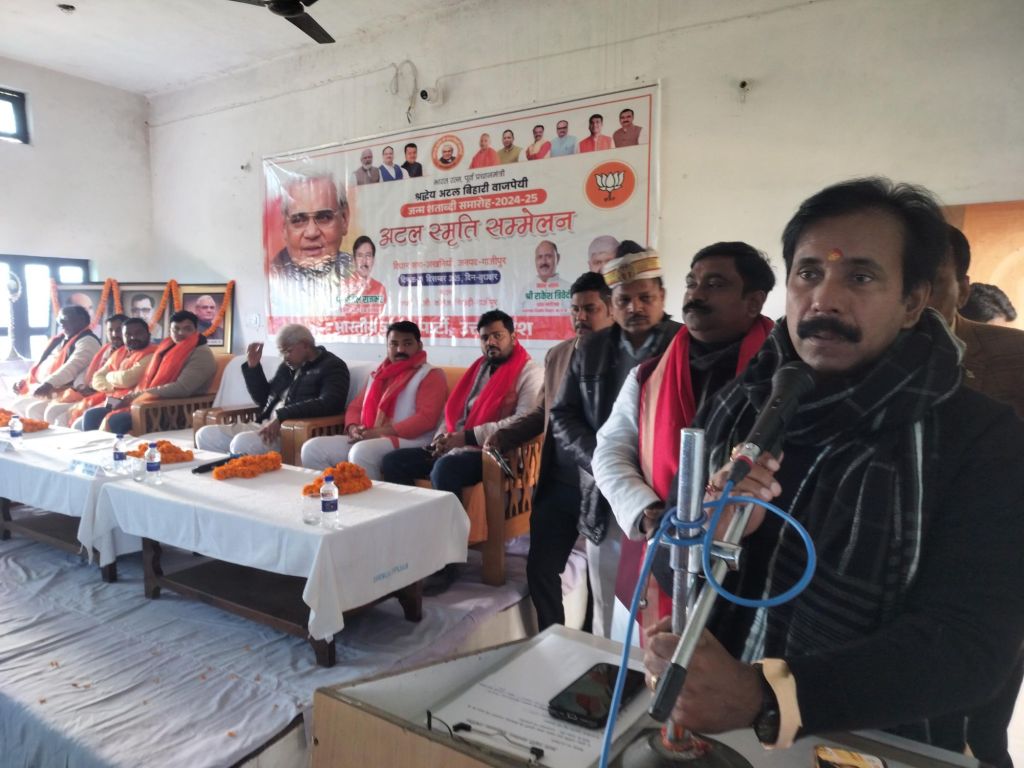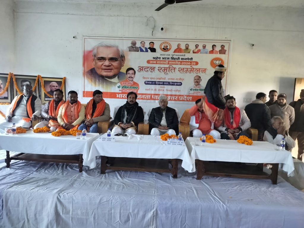 गाजीपुर। पूर्व प्रधानमंत्री अटल बिहारी वाजपेई के जन्म शताब्दी वर्ष मे बुधवार को भाजपा जखनियां द्वारा अटल स्मृति विधानसभा सम्मेलन का आयोजन पूर्व लोकसभा प्रत्याशी पारसनाथ राय कि अध्यक्षता में शबरी महिला महाविद्यालय, सिखड़ी के सभागार मे सम्पन्न हुआ। सम्मेलन को सम्बोधित करते हुए मुख्य अतिथि उत्तर प्रदेश सरकार के कैबिनेट मंत्री अनिल राजभर ने कहा कि अटल जी जैसे महामानव जिन्होंने इस देश की इस माटी के लिए काम किया उनको देश भूले नही इसके लिए भाजपा ने देश भर की सभी विधानसभाओं में अटल स्मृति का अभियान का कार्यक्रम चला रही है, जिसमें देश के प्रति अटल जी द्वारा किए गए कार्यों की चर्चा हो सके और ज्यादा से ज्यादा लोग उनके कार्य व्यवहार से अवगत हो सके। उन्होंने कहा कि इस कार्यक्रम की चर्चा हमे समाज में,अपने परिवार मे व बच्चों के साथ करने की भी जरूरत है हमारी आने वाली पिढीया अपने महापुरुषों को जाने तब जाकर यह कार्यक्रम सार्थक होगा।