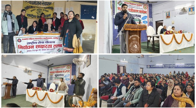 गाजीपुर। भारत निर्वाचन आयोग द्वारा विशेष पुनरीक्षण अभियान के तहत 1 जनवरी 2026 को अहर्ता प्राप्त कर रहे नवीन मतदाताओं के पंजीकरण एवं मतदान जागरूकता संबंधी जनपद स्तरीय कार्यक्रम का आयोजन राजकीय महिला पीजी कॉलेज महुआबाग में मंगलवार को हुआ। कार्यक्रम का शुभारंभ मुख्य अतिथि दिनेश कुमार उप जिला निर्वाचन अधिकारी/अपर जिला अधिकारी गाज़ीपुर एवं प्राचार्य प्रोफेसर अनिता कुमारी द्वारा दीप प्रज्वलन एवं सरस्वती प्रतिमा पर माल्यार्पण कर कार्यक्रम का फीता काट कर मतदाता पंजीयन कार्यक्रम का शुभारंभ किया गया । मतदाता पंजीयन कार्यक्रम में उपस्थित सभी जनपद स्तरीय अधिकारियों एवं निर्वाचन विभाग के कर्मचारी एवं छात्राओं का स्वागत कार्यक्रम संयोजक डॉ शिव कुमार द्वारा किया गया। कार्यक्रम का विषय प्रवर्तन करते हुए राजनीति विभाग के असिस्टेंट प्रोफेसर डॉ राजेश कुमार यादव ने छात्राओं को भारतीय लोकतंत्र में मतदान एवं मतदाताओं की महत्ता से परिचय कराते हुए मतदाता सूची में मतदाताओं का पंजीकरण को अनिवार्य एवं अपरिहार्य बताया। इससे पूर्व अपर जिलाधिकारी वि/रा दिनेश कुमार ने महाविद्यालय के राष्ट्रीय सेवा योजना के निर्वाचन साक्षरता क्लब की ओर से मतदाता पंजीकरण स्टॉल का फीता काटकर उद्घाटन किया तथा छात्रों को अधिक से अधिक लोगों को मतदाता बनने के लिए अपील किया।