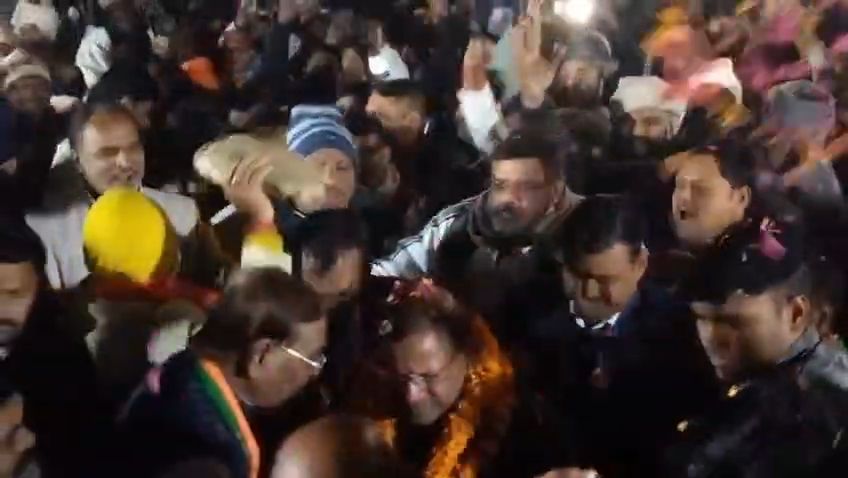 निर्धारित समय से लगभग साढ़े तीन घण्टे विलम्ब से पहुंचने के बावजूद भाजपा कार्यकर्ता कड़ाके की ठंड मे भी जमे रहें