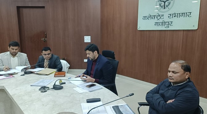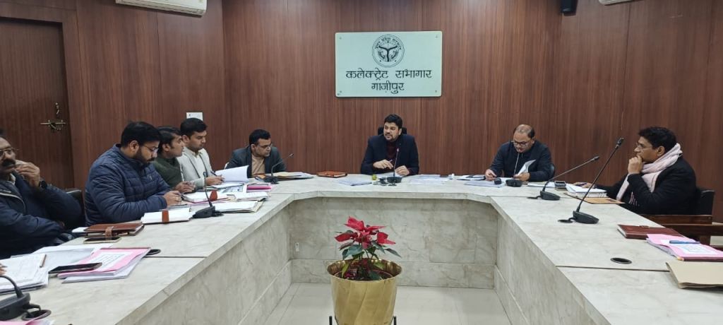 गाजीपुर।जिलाधिकारी अविनाश कुमार की अध्यक्षता में त्रिस्तरीय पंचायत सामान्य निर्वाचन-2026 हेतु निर्वाचक नामावली के वृहद पुनरीक्षण की प्रगति की समीक्षा राइफल क्लब में अपर जिलाधिकारी (वि०/रा०) / निर्वाचक रजिस्ट्रीकरण अधिकारी, समस्त उप जिलाधिकारी, समस्त तहसीलदार, समस्त खण्ड विकास अधिकारी एवं समस्त सहायक विकास अधिकारी (पंचायत) उपस्थिति मे बैठक आहूत की गई ।
