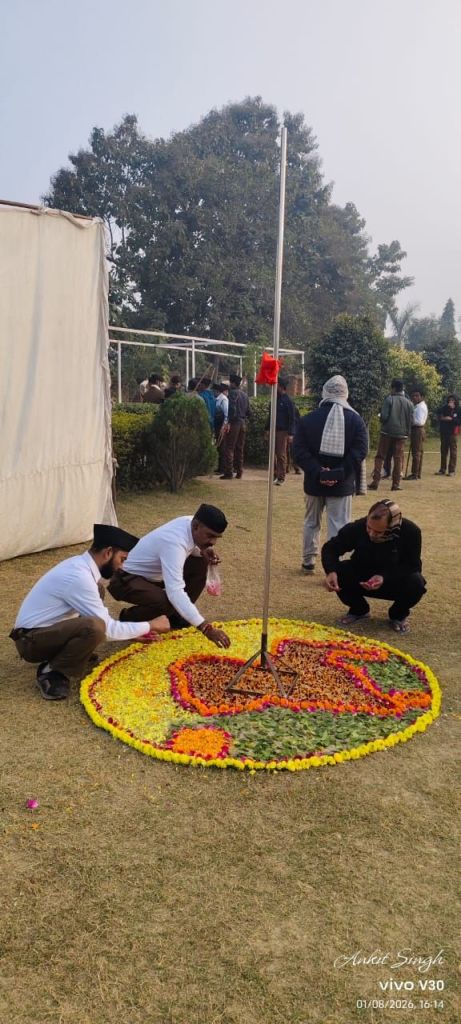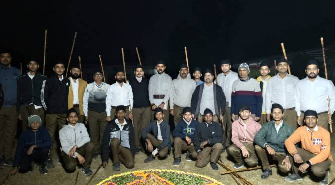 गाजीपुर। जनपद के भदौरा क्षेत्र में स्थित आरल इंग्लिश स्कूल में राष्ट्रीय स्वयंसेवक संघ का सात दिवसीय प्राथमिक शिक्षा वर्ग कार्यक्रम का आयोजन किया गया। इस कार्यक्रम में 15 वर्ष से 60 वर्ष आयुवर्ग का प्रशिक्षण वर्ग चलाया गया जो 2 जनवरी से प्रारम्भ होकर 9 जनवरी तक चला। इसके समापन समारोह के मुख्य अतिथि जिला प्रचारक प्रभात ने भारत माता व संघ के संस्थापक डा. केशव बलिराम हेडगेवार व सदाशिव राव गोलवरकर गुरू जी के चित्र पर माल्यापर्ण कर दीप प्रज्जवलित कार्यक्रम का उद्घाटन किया। अपने संबोधन में बताया कि भारतीय संस्कृत के वाहक युवाओ को प्रशिक्षण प्रदान कर एक सभ्य समाज को संगठित कर मजबूत राष्ट्र के निर्माण में अहम भुमिका का निवर्हन करते है। राष्ट्रीय स्वयंसेवक संघ की शाखा में बाल व तरूण वर्ग के युवाओ के माध्यम से एक बड़े समाज को संगठित कर समाज में फैली कुरीतियो को समाप्त कर नये सामाजिक परिवर्तन का सूत्रपात हो रहा है। जिससे भविष्य मे एक सशक्त हिन्दू समाज सुसंठित हो सके और एक मजबूत राष्ट्र के रूप मे आत्मनिर्भर भारत का निर्माण हो सके। आगे बताया कि जब जब हिन्दू समाज संगठित हुआ है तब देश उन्नति के मार्ग पर प्रशस्त हुए है। अपनी संस्कृति, परंपरा पूर्वजों द्वारा किये गए कार्य को सदैव संजोकर रखना जिससे आने वाली पीढ़ी संस्कारवान बने और देश धर्म समाज के लिए अग्रणी भूमिका का निर्वहन करने के योग्य बने। संघ के शताब्दी वर्ष के बारे मे बताते हुए पंच प्रण कुटुम्ब प्रबोधन, समरसता, स्वदेशी, पर्यावरण, नागरिक कतर्व्य जैसे विषयो पर पर विस्तृत प्रकाश डाला। इस अवसर पर जिले भर से आये शिक्षार्थी, शिक्षक, वर्गाधिकारी झारखण्डे, जिला कार्यवाह अमित, वर्ग कार्यवाह विपिन, सह वर्ग कार्यवाह आकाश, सर्वव्यवस्था प्रमुख कुंदन, मनोज, लव, संदीप आदि उपस्थित रहे।