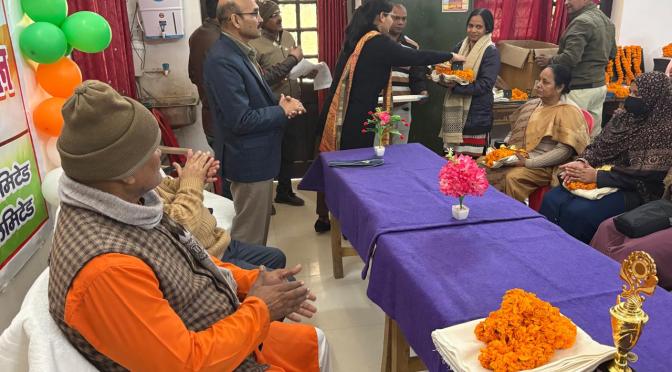 गाजीपुर। जिला सैनिक कल्याण एवं पुनर्वास कार्यालय के प्रांगण में 10 वां आर्मड फोर्सेज वेटरंस डे कार्यक्रम का आयोजन किया गया। जिसमें कारगिल शहीद की पत्नियों 04 व वीरता पुरस्कार से जनपद के सम्मानित 05 पूर्व सैनिकों एवं जनपद के शहीद सैनिकों की पत्नियों 15 तथा पूर्व सैनिकों को अंगवस्त्र एवं मोमेन्टो देकर सम्मानित किया गया। कार्यक्रम में 100 से अधिक जनपद के पूर्व सैनिक एवं आश्रित उपस्थित थे। कार्यक्रम का संचालन जिला सैनिक कल्याण एवं पुनर्वास अधिकारी गाजीपुर के द्वारा किया गया। आर्मड फोर्सेज वेटरंस डे के कार्यक्रम में मुख्य रूपसे दो संस्थाओं इरिसन फार्मर प्रोड्यूसर कम्पनी लिमिटेड एवं भदौरा फार्मर प्रोड्यूसर कम्पनी लिमिटेड ने विशेष रूप से अपना सहयोग प्रदान किया। इरिसन फार्मर कम्पनी के प्रबंधक मुरलीधर सिंह ने कार्यक्रम में सफल आयोजन होने पर प्रसन्नता व्यक्त की गई। जिला सैनिक कल्याण एवं पुनर्वास कार्यालय के विनोद कुमार, बालकृष्ण सिंह यादव, विनोद त्रिपाठी, हरिहर यादव, हीरालाल एवं मुन्नी उपस्थित रहे। समारोह का समापन जिला सैनिक कल्याण एवं पुनर्वास अधिकारी विंग कमांडर मो० निशात अफजल (अ०प्रा०) ने सभी का आभार व्यक्त कर किया।
