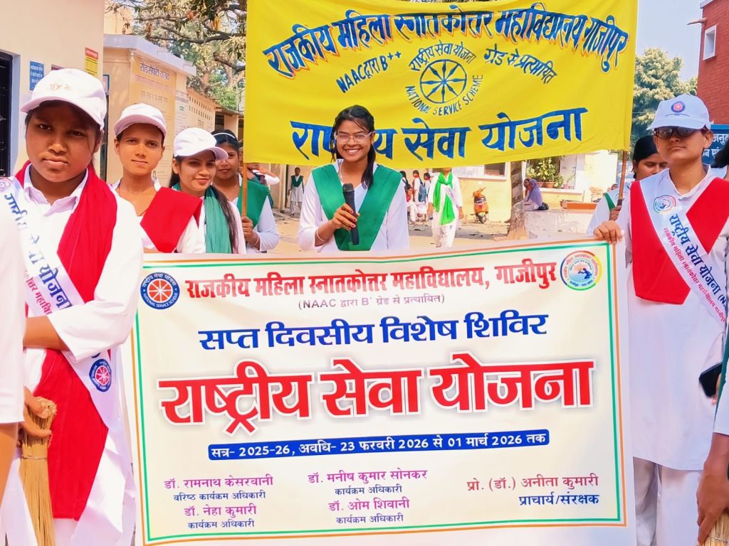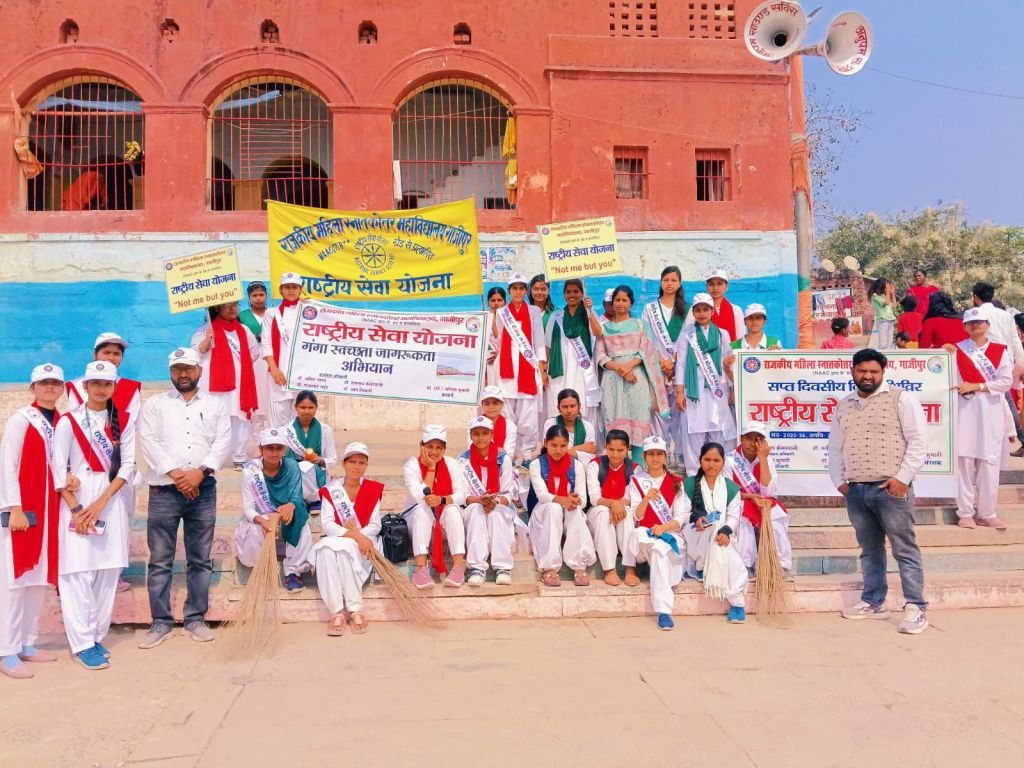 गाजीपुर। राष्ट्रीय सेवा योजना के सप्त दिवसीय शिविर के तीसरे दिन बुधवार को सुबह 7:00 बजे कार्यक्रम अधिकारीयों द्वारा छात्राओं को सुबह की प्रार्थना और योगाभ्यास कराया गया। तदुपरांत छात्रों द्वारा सूक्ष्म जलपान ग्रहण किया गया और गंगा स्वच्छता जागरूकता संबंधी एक रैली ददरी घाट एवं आम घाट तक निकाली गई। रैली के दौरान स्वयंसेवियों द्वारा विभिन्न नारे जैसे नदियों का करो सम्मान तभी बनेगा देश महान, प्लास्टिक हटाओ गंगा बचाओ, गंगा को सूखने से बचाव आसपास पेड़ पौधे लगाओ, लगाए गए। तदुपरांत शिविर में छात्राओं द्वारा दोपहर का भोजन ग्रहण किया। दोपहर 2:00 से सावित्रीबाई फुले सभागार में समाज कल्याणकारी योजनाएं विषय पर एक संगोष्ठी का आयोजन किया गया।