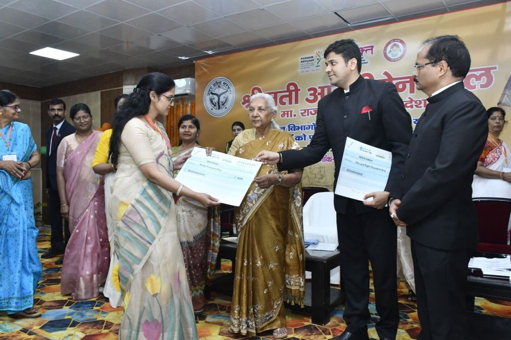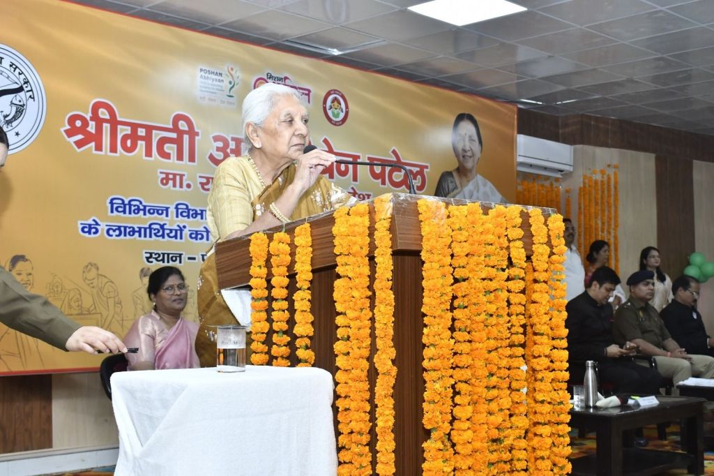 तत्पश्चात राज्यपाल पुलिस लाईन सभागार मे विभिन्न विभागो की जनकल्याणकारी योजनाओ के लाभार्थियों को प्रमाण पत्र/सामग्री का वितरण किया । जिसमे 200 आंगनवाड़ी कार्यकत्रियो को प्री-स्कूल किट का वितरण, पोषण अभियान के अन्तर्गत 10 पोषण पोटली का वितरण, 100 आयुमान कार्ड का वितरण, स्वामित्व योजना के अन्तर्गत 300 लाभार्थियो को घरौनी का वितरण, मुख्यमंत्री आवास योजना के अन्तर्गत 200 लाभार्थियों को चाभी का वितरण, 100 कृषको को प्रधानमंत्री सम्मान निधि योजना का स्वीकृति प्रमाण पत्र, 150 पी एम सूर्य योजना के लाभार्थियो को प्रमाण पत्र वितरण, 100 जीरो पावर्टी के अन्तर्गत अन्त्योदय नवीन राशन कार्ड का वितरण, श्रम विभाग द्वारा संचालित 225 लाभार्थियो को प्रमाण पत्र वितरण, मुख्यमत्री युवा उद्यमी अभियान के 250 लाभार्थियों को डमी चेक का वितरण किया गयां । इस दौरान सभागार मे बाल विकास पुष्टाहार विभाग के कार्यकम मे आंगनबाड़ी बच्चो द्वारा विभिन्न सांस्कृतिक प्रस्तुतियाँ दीं गई जिनकी राज्यपाल ने सराहना करते हुए बच्चो को फलो की टोकरी एंव चॉकलेट का वितरण किया । इस दौरान महिला महाविद्यालय के छात्राओ द्वारा महिला सुरक्षा पर संबोधन एवं शिक्षा पर सरकारी संस्थाओ की भूमिका पर अपने विचार व्यक्त किए गए।