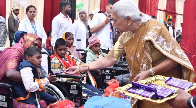 राज्यपाल ने 27 फरवरी 2026 को पुलिस लाईन सभागार मे पूर्वान्ह 10 बजे अपने निर्धारित समय से पहुचकर विभिन्न कार्यक्रम मे प्रतिभाग किया। भ्रमण के दौरान उन्होने दिव्यांग बच्चो से संवाद स्थापित कर उनके स्वास्थ्य की जानकारी ली। दिव्यांगजनों को वहीलचेयर एवं अन्य उपकरण आदि का वितरित किया। जिससे उन्हें अपने जीवन में सुविधा हो सके। इस अवसर पर दिव्यांग बच्चो द्वारा ‘‘तारे जमीन पर‘‘ गीत पर भावपूर्ण सांस्कृतिक प्रस्तुति दी गई। राज्यपाल ने अपने संबोधन में कहा कि सरकार की प्राथमिकता गरीबों और वंचितों के जीवन में सुधार लाना है। उन्होंने कहा कि विभिन्न विभागों द्वारा संचालित जनकल्याणकारी योजनाओं का लाभ अधिक से अधिक लोगों तक पहुंचाना ही प्राथमिकता है। शिक्षा और स्वास्थ्य के क्षेत्र में सरकार द्वारा कई योजनाएं चलाई जा रही हैं, जिनका लाभ लाभार्थियों को मिल रहा है। राज्यपाल ने बच्चों से उनकी शिक्षा, रुचियों, उपलब्धियों एवं भविष्य की योजनाओं के बारे में जानकारी ली। उन्होंने बच्चों का उत्साहवर्धन करते हुए कहा कि दिव्यांगता किसी की प्रतिभा और क्षमता में बाधा नहीं बन सकती। दृढ़ संकल्प, निरंतर प्रयास और सकारात्मक सोच के साथ वे जीवन के हर क्षेत्र में सफलता प्राप्त कर सकते हैं। पुलिस लाईन परिसर मे विभिन्न विभागो द्वारा स्टाल मे माध्यम से प्रदर्शनी लगाई गई थी। जिसका राज्यपाल ने अवलोकन कर जानकार ली गई।