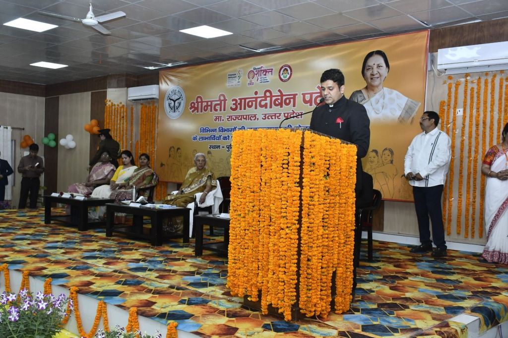 जिलाधिकारी अविनाश कुमार ने राज्यपाल का हार्दिक स्वागत एवं अभिनन्दन करते हुए कहा कि आप महोदया के निर्देशन में महिला सशक्तिकरण, महिला एवं बाल स्वास्थ्य, दिव्यांगजनों के कल्याण तथा समाज के वंचित वर्गो के प्रति संवेदनशील प्रशासनिक दृष्टि को निरंतर नई दिशा मिली है। महिलाओं की गरिमा, सुरक्षा, पोषण, स्वास्थ्य, बच्चो के सर्वार्गीण विकास तथा दिव्यांगजनों के सम्मानजनक जीवन के लिये आपके मार्गदर्शन और करूणामय दृष्टिकोण ने हम सभी को प्रेरित किया है। विशेष रूप से टी0बी0 रोगियों के प्रति आपकी मानवीय संवेदना, नियमित समीक्षा पोषण में सहयोग, उपचार की निरंतरता तथा टी0बी0 मुक्त समाज की दिशा में दिए गए आपके स्पष्ट दिशा निर्देश जन स्वास्थ्य के क्षेत्र में एक सशक्त प्रेरणा है। आपके प्रयासो से टी0बी0 रोगियों को न केवल चिकित्सकीय उपचार बल्कि समाजिक सम्मान और आत्मबल भी प्राप्त हो रहा है।महोदया आज इस अवसर पर प्रशासन के विभिन्न जनकल्याणकारी योजनाओं के लाभार्थियों को लाभ प्रदान किया जा रहा है। कार्यक्रम के अन्त मे मुख्य विकास अधिकारी संतोष कुमार वैश्य ने आभार व्यक्त किया।
