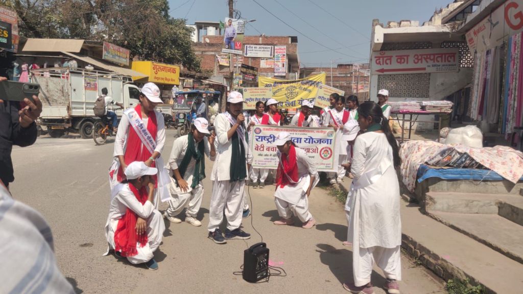 गाजीपुर। शुक्रवार को राष्ट्रीय सेवा योजना के सप्त दिवसीय शिविर के पांचवें दिन सुबह 7 बजे कार्यक्रम अधिकारीयों द्वारा छात्राओं को सुबह की प्रार्थना और योगाभ्यास कराया गया। तदुपरांत छात्रों द्वारा सूक्ष्म जलपान ग्रहण किया गया और बेटी बचाओ बेटी पढ़ाओ संबंधी एक रैली महुआ बाग से होते हुए मिश्रा बाजार तक निकाली गई।
