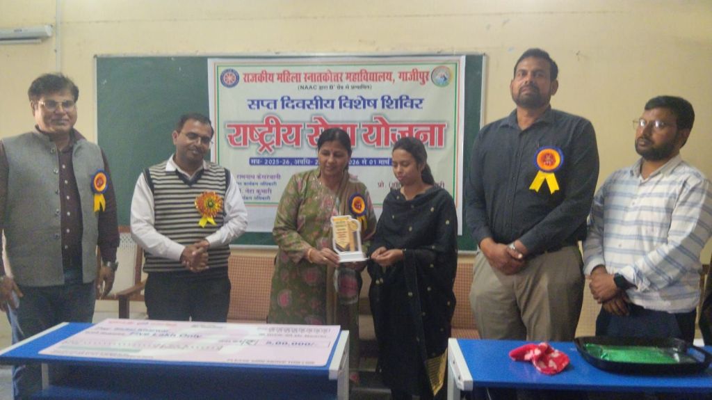 संगोष्ठी में मुख्य अतिथि महात्मा गांधी सती स्मारक महाविद्यालय गरुआ मकसूदपुर से डॉ नितेश पांडे रहे। डॉ नितेश पांडे ने छात्राओं को संबोधित करते हुए कहा कि शिक्षा, विज्ञान, तकनीक, खेल, कृषि, पर्यावरण संरक्षण और सामाजिक सुधार—हर क्षेत्र में युवाओं का योगदान राष्ट्र को सशक्त बनाता है। उन्होंने कहा कि NSS न केवल सेवा की भावना विकसित करता है, बल्कि नेतृत्व, अनुशासन, सहयोग और संवेदनशीलता जैसे गुणों का भी विकास करता है। तत्पश्चात मुख्य अतिथि को स्मृति चिन्ह देकर उन्हें सम्मानित किया गया।