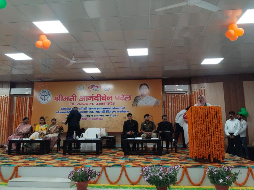 गाज़ीपुर। राज्यपाल उत्तर प्रदेश आनंदीबेन पटेल के आगमन के अवसर पर शुक्रवार को पुलिस लाइन सभागार में कार्यक्रम आयोजित की गई। जिसमें राजकीय महिला स्नातकोत्तर महाविद्यालय की छात्राओं ने सक्रिय एवं सराहनीय सहभागिता की। इस अवसर पर महाविद्यालय की दो प्रतिभाशाली छात्राओं शमाइला नाज़ (बी.ए. द्वितीय वर्ष) एवं संध्या राजभर (एम.ए. अंतिम वर्ष) को राज्यपाल के समक्ष अपने विचार व्यक्त करने का अवसर प्राप्त हुआ।