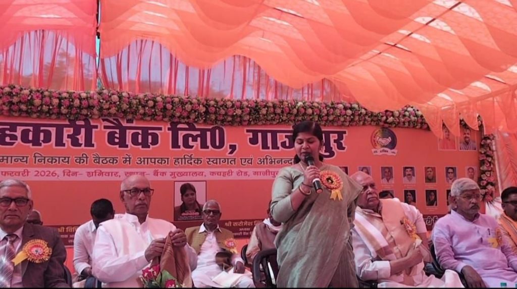 गाजीपुर। जिला सहकारी बैंक लि0, गाजीपुर की 21वीं सामान्य निकाय बैठक शनिवार को जिला सहकारी बैंक परिसर मे बैंक अध्यक्ष सरोजेश सिंह की अध्यक्षता में आयोजित की गयी जिसमें विभिन्न संस्थाओं के बैंक प्रतिनिधियों के द्वारा प्रतिभाग किया गया। मुख्य अतिथि डाॅ0 संगीता बलवन्त ने अपने उद्बोधन में केन्द्र सरकार एवं राज्य सरकार के द्वारा सहकारिता क्षेत्र में किये जा रहे कार्यो से विस्तार से अवगत कराया गया एवं आम जनमानस को सहकारिता विभाग के सरकार की योजनाओं का अधिक से अधिक लाभ उठाने के लिए सहकारिता से जुड़ने का आहवाहन किया गया। उन्होंने कहा कि प्रधानमंत्री नरेन्द्र मोदी व सहकारिता मंत्री अमित शाह के नेतृत्व में सहकारिता विभाग लगातार प्रगति पथ पर दौड़ रहा है। उन्होंने कहा कि प्रधानमंत्री नरेन्द्र मोदी के विकसित भारत के लक्ष्य को साकार करने में सहकारिता की महत्वपूर्ण भूमिका होगी।