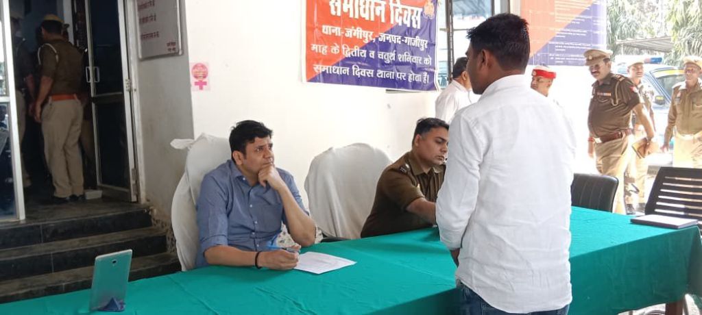 गाजीपुर। शनिवार को थाना दिवस के अवसर पर जिलाधिकारी अविनाश कुमार की अध्यक्षता एवं पुलिस अधीक्षक डा0 ईरज राजा की उपस्थिति में थाना जंगीपुर में उपस्थित फरियादियों की फरियाद सुना गया साथ ही शिकायतो को जल्द से जल्द निस्तारण के लिए प्रशासनिक एवं पुलिस अधिकारियों को निर्देश दिया।