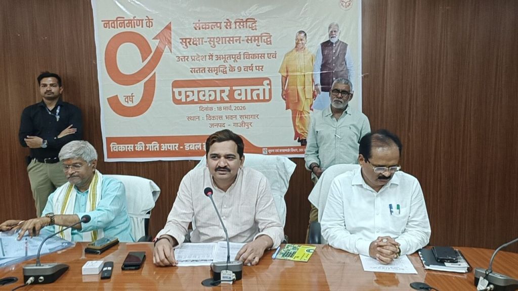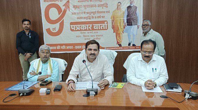 गाजीपुर। उत्तर प्रदेश सरकार के 9 वर्ष होने के अवसर पर एमएलसी विशाल सिंह ‘‘चंचल‘‘ ने विकास भवन सभागार मे प्रेस वार्ता किया। प्रेस प्रतिनिधियो से मुखातिब होते हुए उन्होने उत्तर प्रदेश सरकार के 09 वर्ष होने के अवसर पर प्रदेश सरकार की उपलब्धियां गिनाई और बदलते उत्तर प्रदेश पर प्रकाश डाला।