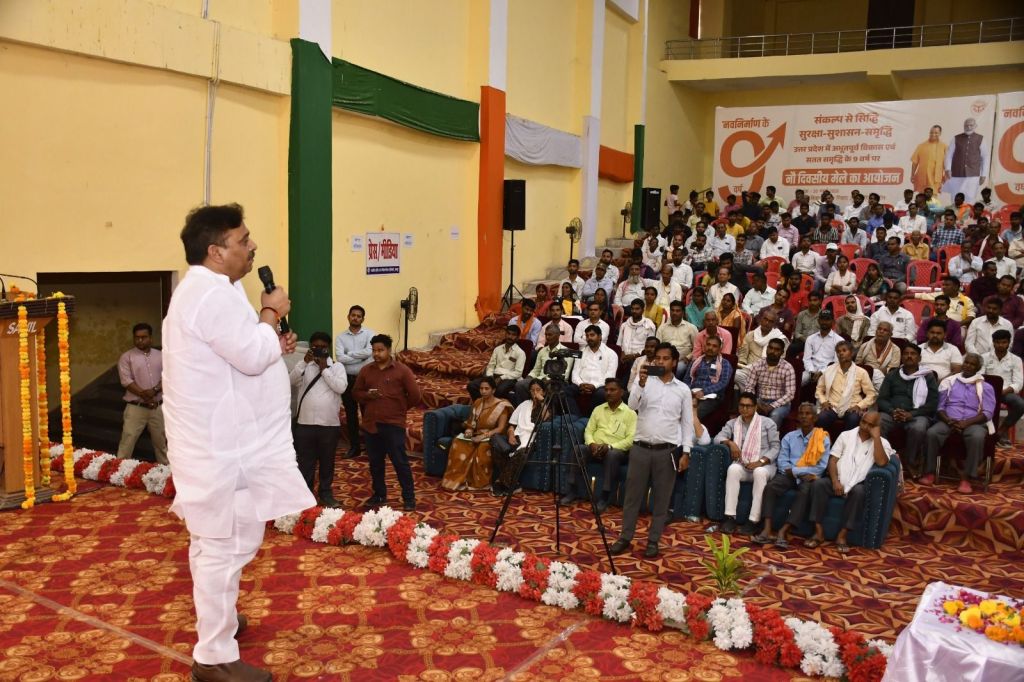 जहां मुख्यमंत्री योगी आदित्यनाथ का संदेश एवं ‘‘टेबल कलेन्टर, विरासत भी विकास का वार्षिक कलेन्डर का वितरण किया गया। जिसका मंत्री ने अवलोकन कर जानकारी ली। कार्यक्रम के दौरान, विभिन्न सरकारी विभागों ने जनकल्याणकारी योजनाओं का प्रचार-प्रसार किया। जिला उद्योग केंद्र द्वारा ‘एक जनपद, एक उत्पाद‘ योजना के तहत लाभार्थियों को टूल किट वितरित की गई। मुख्यमंत्री युवा उद्यमी विकास योजना के तहत स्वरोजगार को बढ़ावा देने के लिए ऋण चेक का वितरण किया गया। कार्यक्रम में सूचना विभाग से आए कलाकारों ने सांस्कृतिक प्रस्तुतियों से समां बांधा।