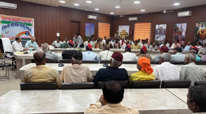 गाजीपुर।जिला सैनिक बन्धु की बैठक अपर जिलाधिकारी वि0/रा0 दिनेश कुमार की अध्यक्षता मे कलेक्ट्रेट सभागार में सम्पन्न हुई। जिला सैनिक बन्धु बैठक का प्रारंभ आई सी-89357 एफ कैप्टन प्रशान्त कुमार चौरसिया जो 22 मार्च 2026 को भैरव बटालियन में शहीद हुए हैं,उन्हें 2 मिनट का मौन व्रत रखकर श्रद्धांजलि अर्पित किया गया। तत्पश्चात् विंग कमांडर मो० निशात अफजल (अ० प्रा०) जिला सैनिक कल्याण एवं पुनर्वास अधिकारी, गाजीपुर के संबोधन से प्रारंभ हुआ। बैठक में अपर जिलाधिकारी द्वारा पिछली बैठकों के आवेदन पत्रों के निस्तारण की समीक्षा की गई। समीक्षा उपरान्त पाया गया कि जनवरी महीने तक कुल 77 आवेदन पत्र प्राप्त हुए थे। जिसमें 64 आवेदन पत्रों का निस्तारण की आख्या प्राप्त हो चुकी है। 6 प्रकरण शस्त्र एवं 7 प्रकरण दूसरे विभाग का निस्तारण लंबित है। अपर जिलाधिकारी (वि०/रा०) द्वारा निर्देश दिया गया कि जिन प्रकरणों की आख्या प्राप्त नहीं हुई है, उन सारे प्रकरणों को आईजीआरएस पोर्टल पर संबंधित विभाग के नाम से प्रकरण दर्ज करा दिया जाए। बैठक में 11 प्रार्थना पत्र पूर्व सैनिकों एवं उनके आश्रितों के द्वारा दिया गया। जिसके निस्तारण हेतु अपर जिलाधिकारी द्वारा संबंधित विभाग को भेजने का निर्देश दिया गया। बैठक में 55 पूर्व सैनिक एवं उनके आश्रित उपस्थित थे। बैठक के अन्त में सेवानिवृत्त आ० कैप्टन बब्बन राम निवासी साधोपुर के द्वारा 5वे खेलो मास्टर/राष्ट्रीय खेल 2026 जो कि चंडीगढ़ में 20 से 22 मार्च तक आयोजित किया गया। उसमें 300 मीटर बाधा दौड़ एवं 4×100 रिले दौड़ में स्वर्ण पदक प्राप्त करने पर उन्हें मेडल एवं फूलमाला से सम्मानित किया गया। बैठक का समापन जिला सैनिक बन्धु जिला सैनिक कल्याण एवं पुनर्वास अधिकारी ने अपने संबोधन से किया।