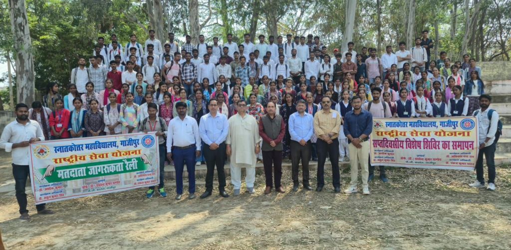 गाजीपुर। स्नातकोत्तर महाविद्यालय गोराबाजार की राष्ट्रीय सेवा योजना की चारों इकाइयों के सात दिवसीय विशेष शिविर का समापन मंगलवार को संपन्न हुआ। कार्यक्रम का आयोजन प्राचार्य प्रो. राघवेन्द्र कुमार पाण्डेय, प्रो. विनय कुमार दुबे, प्रो. संजय चतुर्वेदी और डॉ. शैलेंद्र सिंह की गरिमामयी उपस्थिति में हुआ।