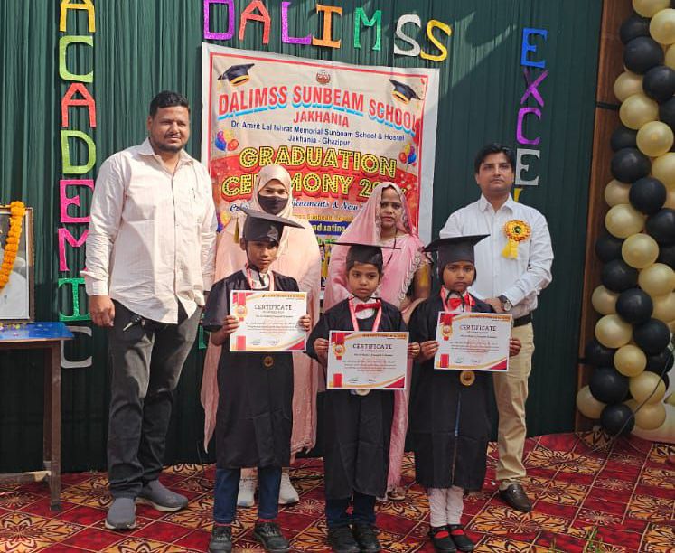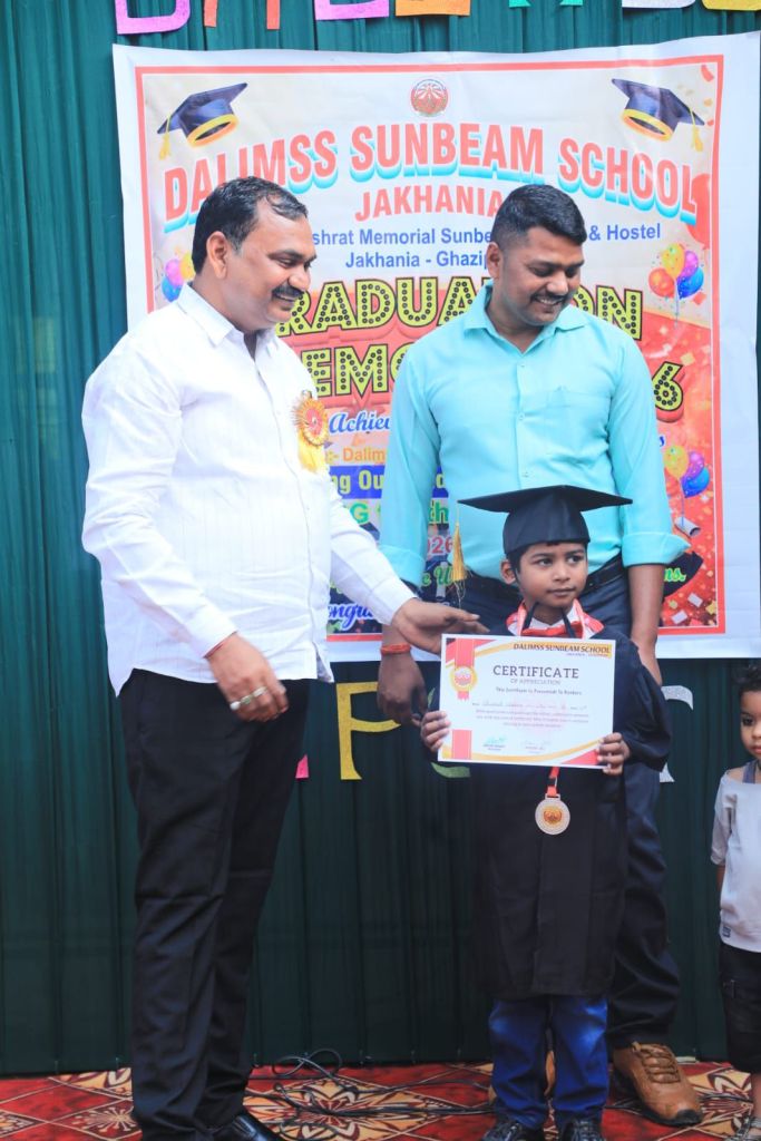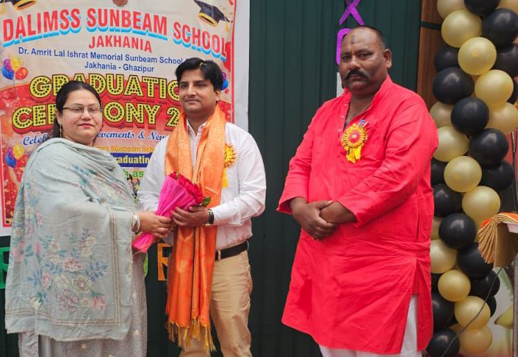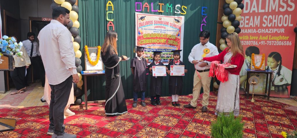 गाजीपुर। डालिम्स सनबीम स्कूल जखनिया में बुधवार को ग्रेजुएशन सेरेमनी एवं अभिभावक-शिक्षक बैठक (PTM) का भव्य आयोजन किया गया। कार्यक्रम का शुभारंभ विद्यालय की डायरेक्टर रुबीना खान द्वारा दीप प्रज्वलित कर किया गया।