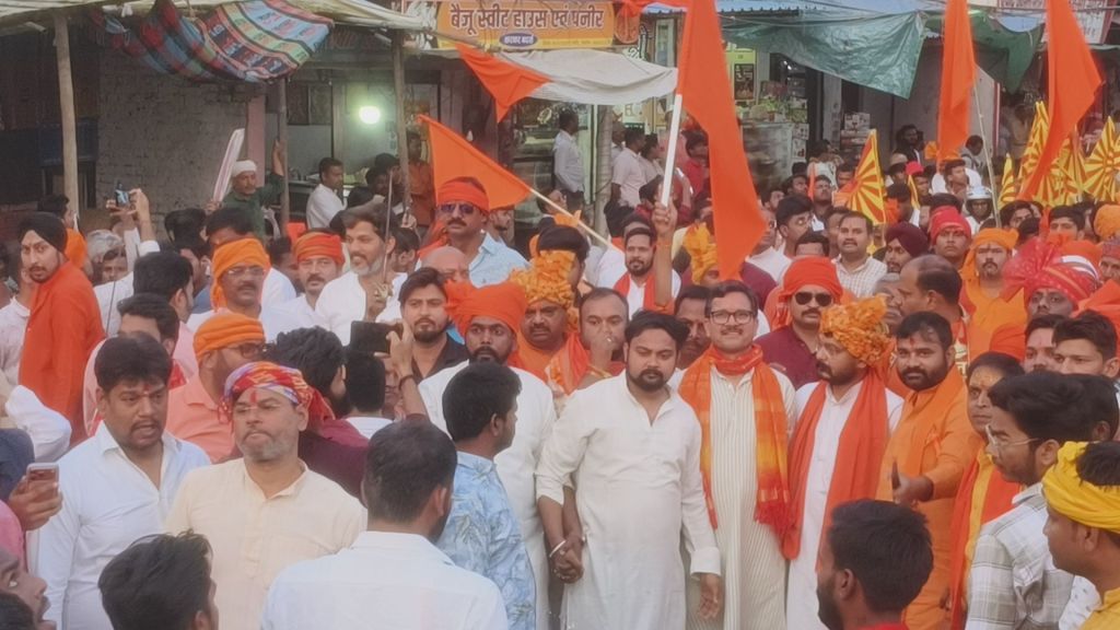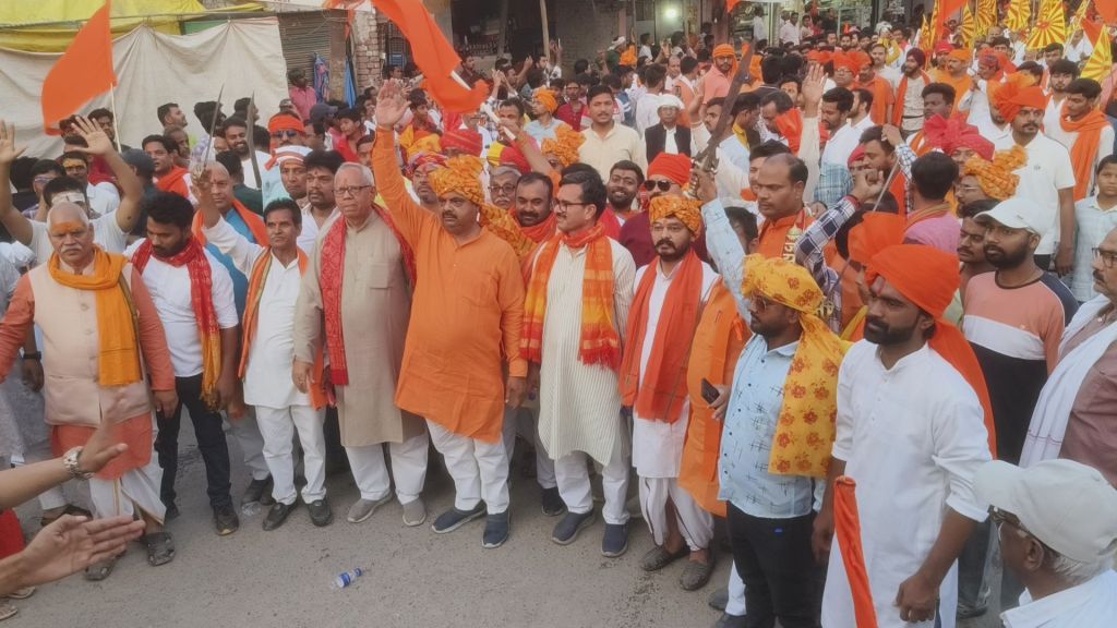 इस दौरान भगवा पगड़ी बांधे हाथ में गदा त्रिशूल लिए निकले हजारों श्रद्धालु शामिल हुए। इस अवसर पर विश्व हिन्दु परिषद के जिलाध्यक्ष विपिन श्रीवास्तव, बजरंग दल जिला संयोजक रविराज हिन्दू, मंत्री बिपिन सिंह, भाजपा के जिलाध्यक्ष ओमप्रकाश राय, कृष्ण बिहारी राय, राष्ट्रीय स्वयंसेवक संघ के प्रचारक प्रभात,
