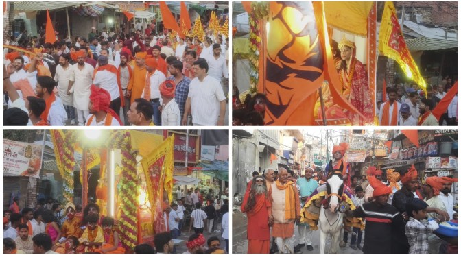 इस दौरान भगवा पगड़ी बांधे हाथ में गदा त्रिशूल लिए निकले हजारों श्रद्धालु शामिल हुए। इस अवसर पर विश्व हिन्दु परिषद के जिलाध्यक्ष विपिन श्रीवास्तव, बजरंग दल जिला संयोजक रविराज हिन्दू, मंत्री बिपिन सिंह, भाजपा के जिलाध्यक्ष ओमप्रकाश राय, कृष्ण बिहारी राय, राष्ट्रीय स्वयंसेवक संघ के प्रचारक प्रभात,
