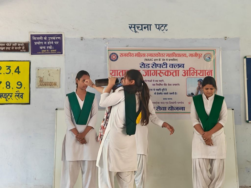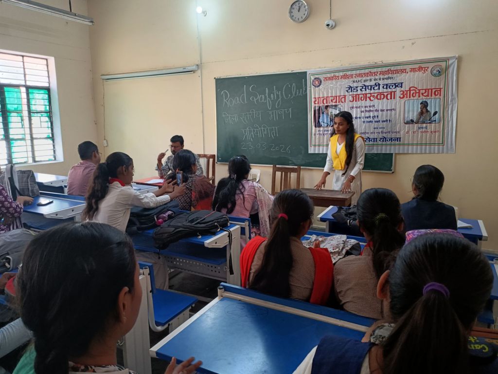 गाजीपुर। राजकीय महिला स्नातकोत्तर महाविद्यालय महुआबाग में सोमवार को सड़क सुरक्षा जागरूकता अभियान के अंतर्गत जनपद स्तरीय भाषण, रील्स एवं नुक्कड़ नाटक प्रतियोगिता का सफल आयोजन किया गया। इस कार्यक्रम का मुख्य उद्देश्य छात्र-छात्राओं में सड़क सुरक्षा के प्रति जागरूकता उत्पन्न करना तथा जिम्मेदार नागरिक बनने के लिए प्रेरित करना था। कार्यक्रम की अध्यक्षता महाविद्यालय की प्राचार्य, प्रोफेसर अनीता द्वारा किया गया।