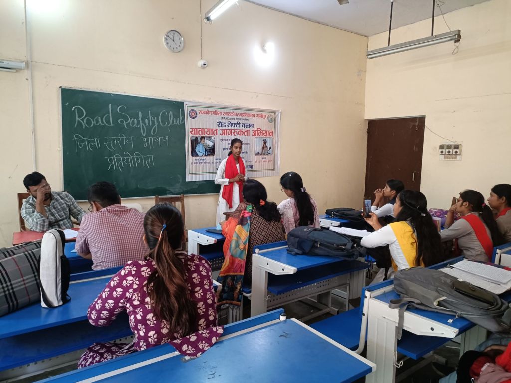 राजकीय महिला स्नातकोत्तर महाविद्यालय में सड़क सुरक्षा जागरूकता अभियान के अंतर्गत जनपद स्तरीय भाषण, रील्स एवं नुक्कड़ नाटक प्रतियोगिता का आयोजन