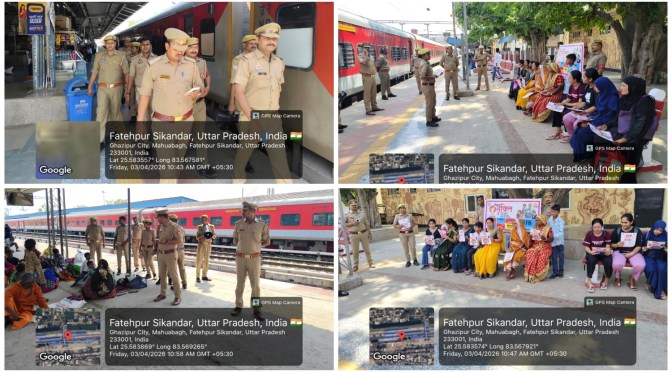 गाजीपुर। शुक्रवार को थाना जीआरपी सिटी द्वारा रेलवे स्टेशन पर मिशन शक्ति फेज 5.0 नारी सुरक्षा, नारी सम्मान, नारी स्वालंबन एवं महिलाओं-बालिकाओं की सुरक्षा अभियान के तहत बालिकाओं/महिलाओं को सरकार के विभिन्न सरकारी योजनाओं के बारे मे जानकारी दी गई।