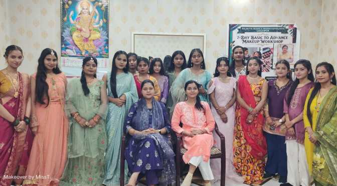 राजकीय महिला महाविद्यालय में छात्राओं के बीच सजी ‘सेल्फ मेकअप’ प्रतियोगिता, ट्रेनर ने दी प्रोफेशनल टिप्स।