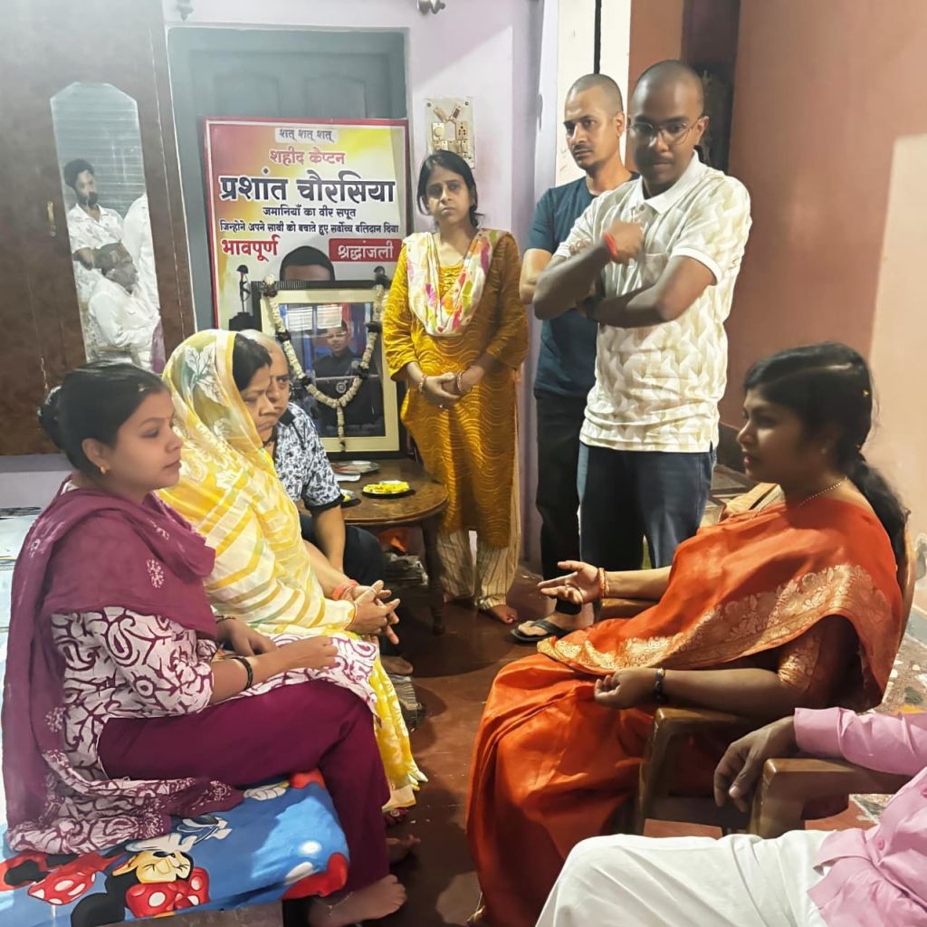 शहीद कैप्टन प्रशांत चौरसिया के माता-पिता भाई-बहन की आंखें राज्यसभा सांसद से मिलकर नम हो गई वहीं राज्यसभा सांसद भी अपने आंसू रोक न सकी पर यह आंसू गर्व मिश्रित थे। शहीद प्रशांत चौरसिया का बलिदान सबके हृदय में गर्व के साथ हमेशा जीवित रहेगा।